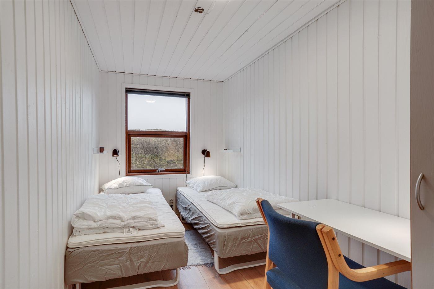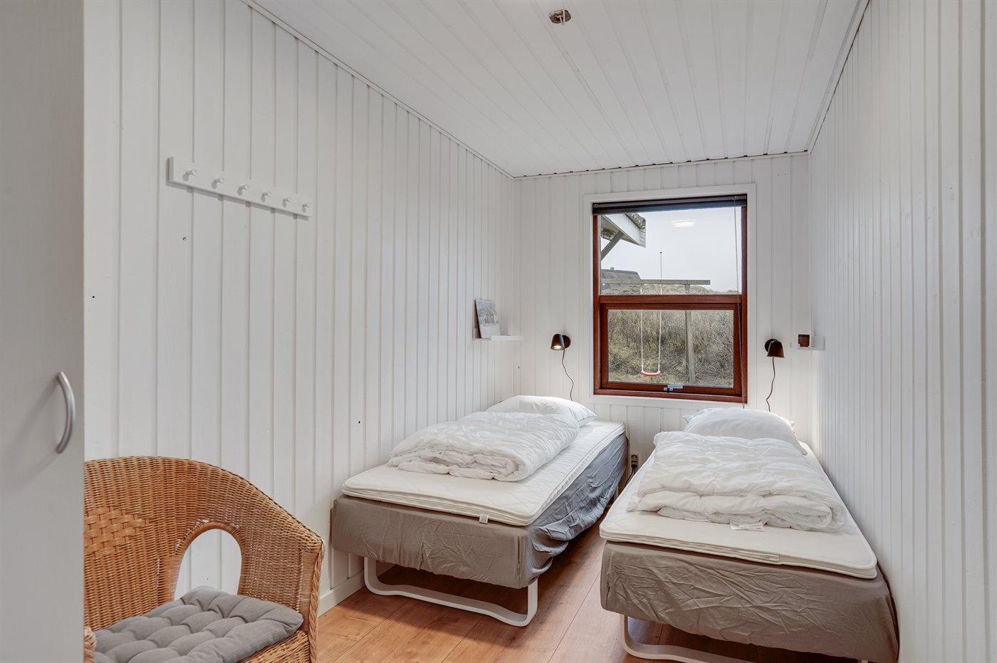 Der er i alt 4 soveværelser. Sovepladserne fordeler sig på: 4 sovepladser i dobbeltsenge. 4 sovepladser i enkeltsenge. 4 af disse sovepladser fordeler sig på 2 annekser. Derudover er der 1 stk. barneseng.