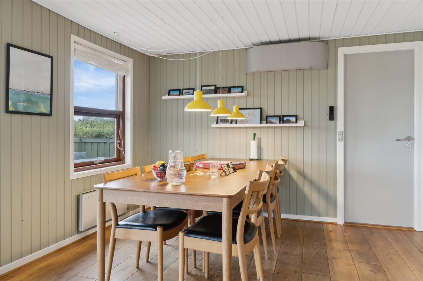 Sommerhuset egner sig til 8 personer samt 1 barn op til 3 år. Ferieboligen er på 116 m² og er bygget i 1975. I 2007 gennemgik ferieboligen en delvis renovering. Det er ikke tilladt at medbringe husdyr. Ferieboligen er udstyret med 2 energibesparende varmepumper, hvoraf den ene befinder sig i annekset. Ferieboligen har vaskemaskine. Tørretumbler. Frysekapacitet på 40 liter. Der er desuden brændeovn. Til de små er der 1 stk. barnestol.