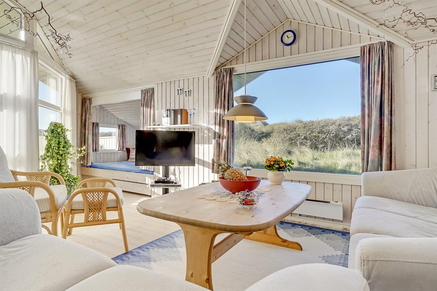 Særdeles velholdt sommerhus i træ fra 1993, beliggende på en stor grund kun 150 m fra den pragtfulde, hvide sandstrand ved Vesterhavet. Fra toppen af grunden er der en fantastisk udsigt til vandet og klitterne.