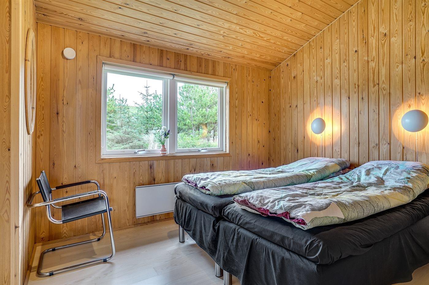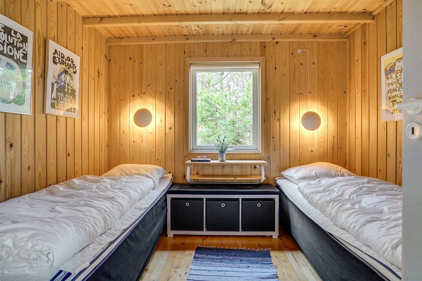 Der er i alt 3 soveværelser. Sovepladserne fordeler sig på: 4 sovepladser i dobbeltsenge. 2 sovepladser i enkeltsenge.