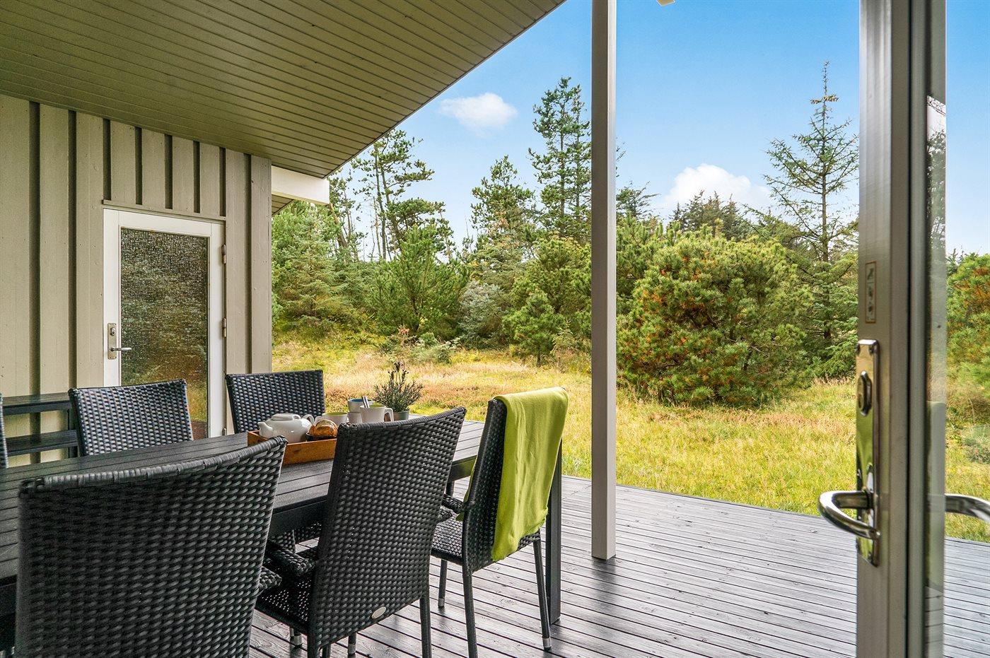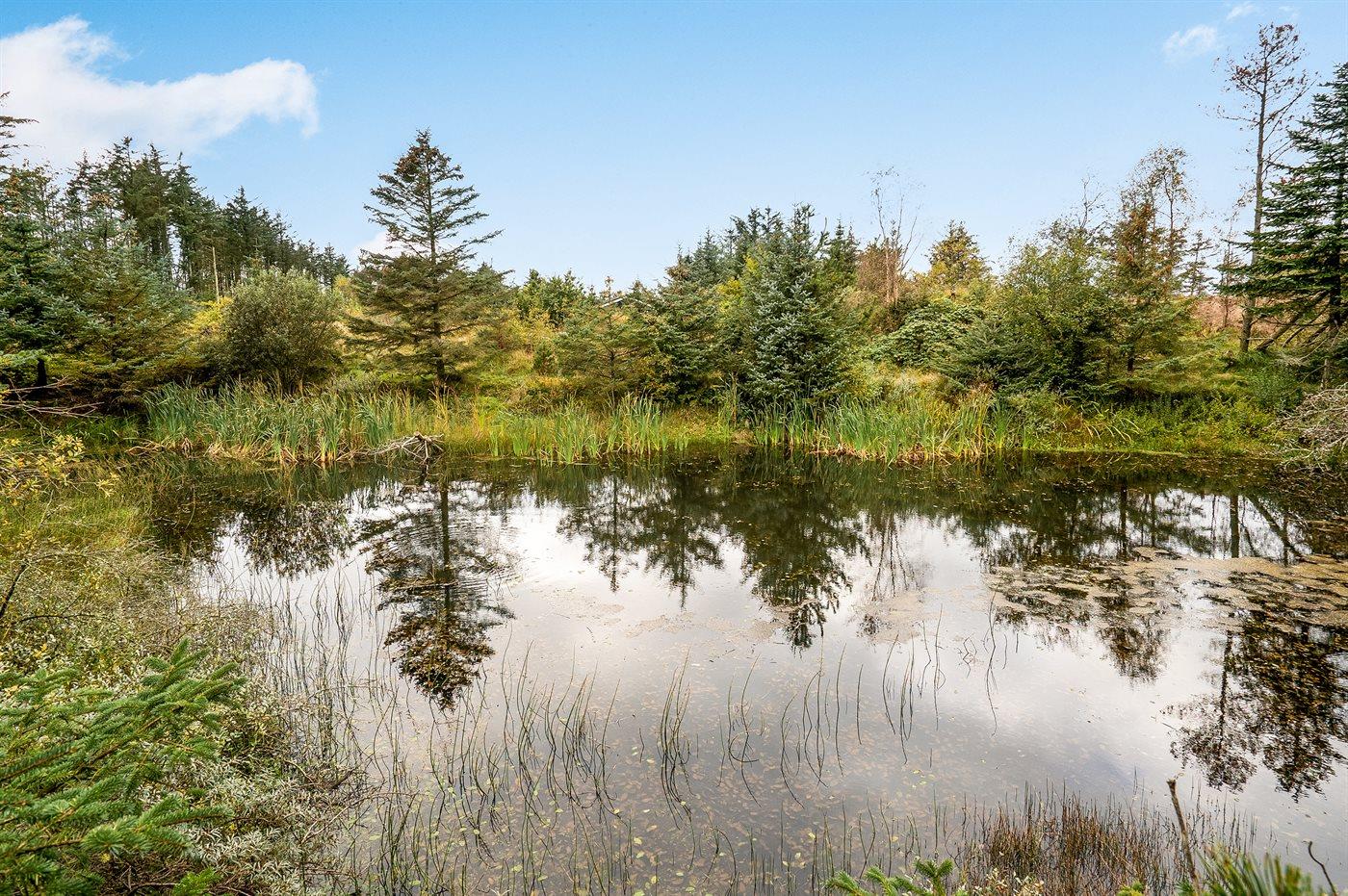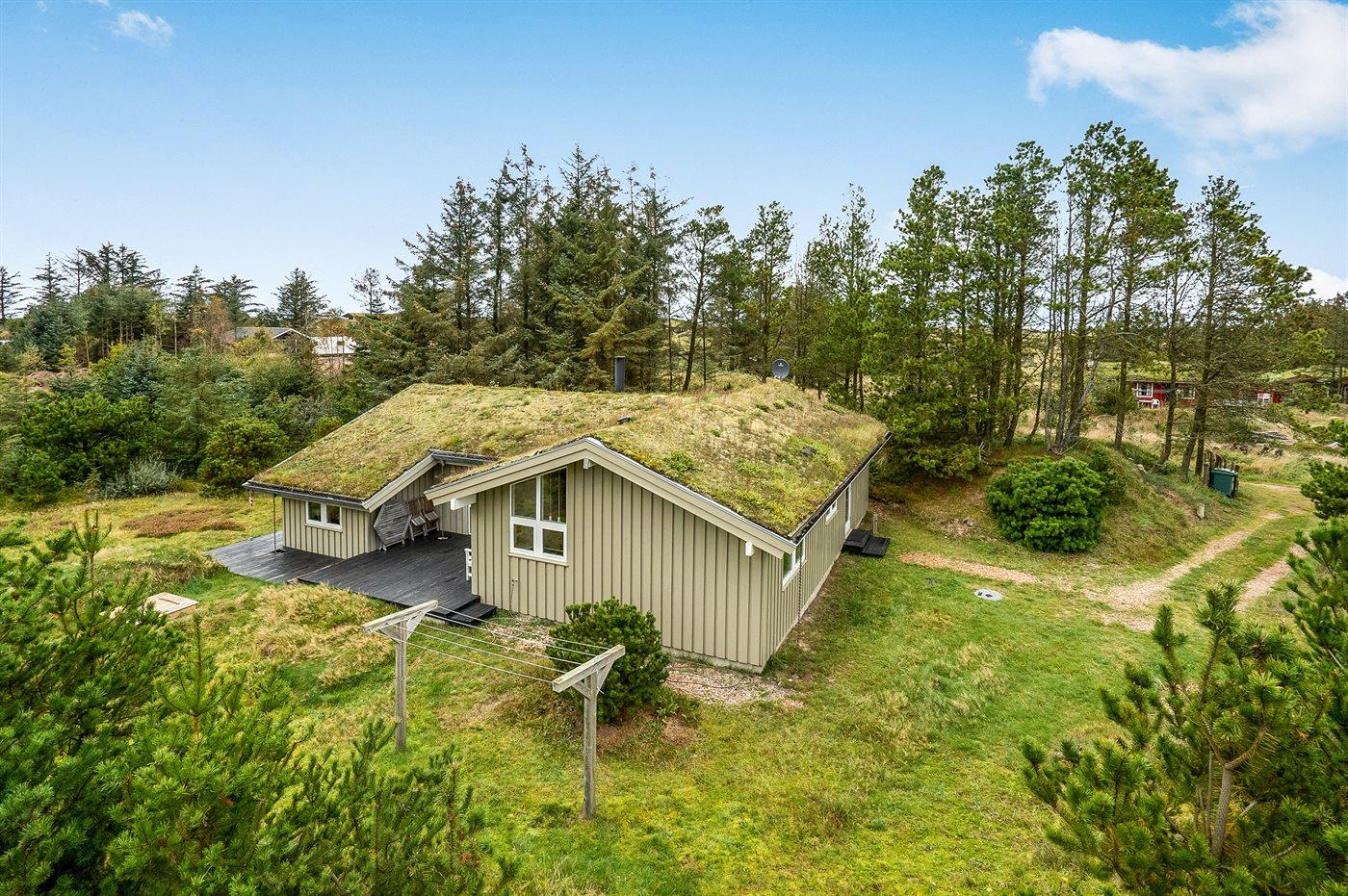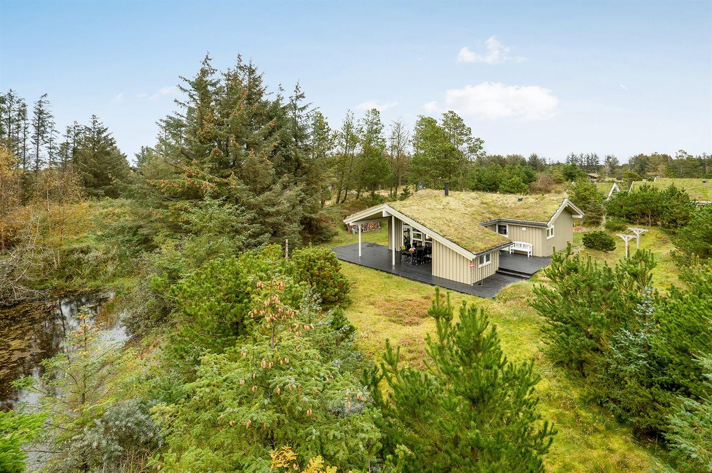 Ferieboligen er beliggende på en 2500 m² stor naturgrund. Der er 700 m til havet. Nærmeste forretning er beliggende i en afstand af 4000 m. Til ferieboligen hører 47 m² terrasseareal. Desuden er der 18 m² overdækket terrasse. Elektrisk grill. Der er redskabsrum. Sandkasse. Parkering ved ferieboligen.