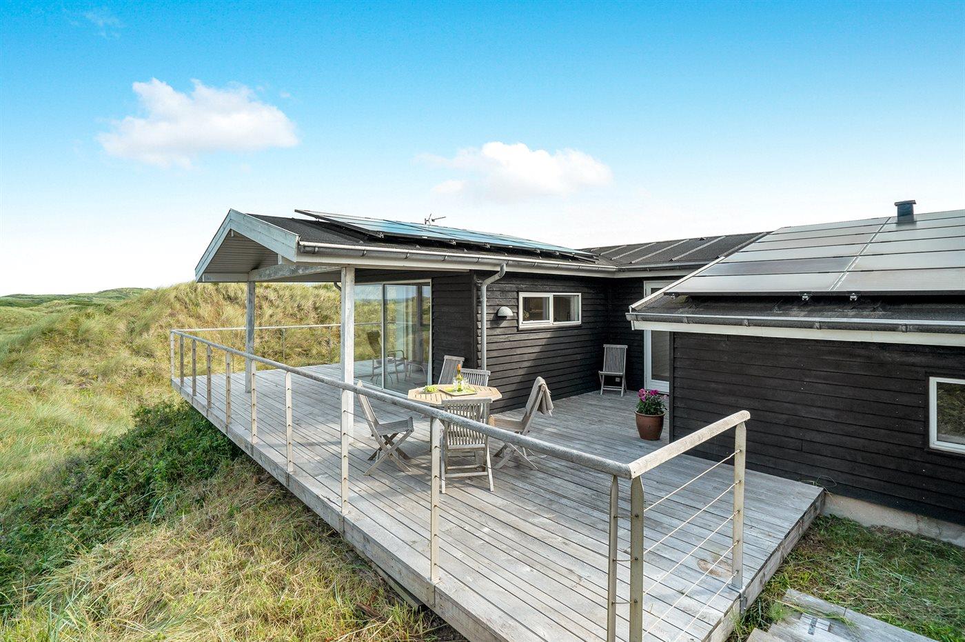 Ferieboligen er beliggende på en 1290 m² stor klitgrund. Der er 500 m til havet. Nærmeste forretning er beliggende i en afstand af 1500 m. Til ferieboligen hører 85 m² terrasseareal. Desuden er der 15 m² overdækket terrasse. Der er redskabsrum. Sandkasse. Parkering ved ferieboligen.
