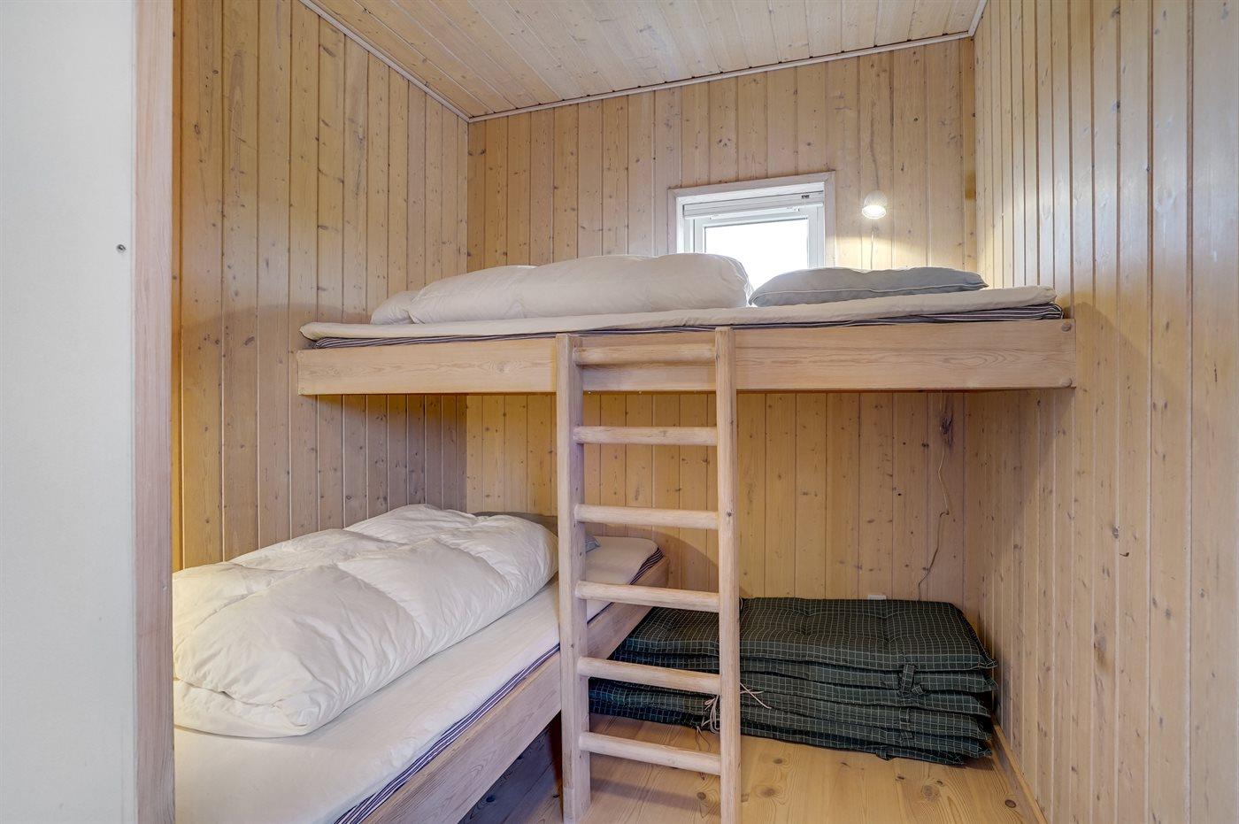 Der er i alt 3 soveværelser. Sovepladserne fordeler sig på: 4 sovepladser i dobbeltsenge. 2 sovepladser i køjeseng. Derudover er der 1 stk. barneseng.
