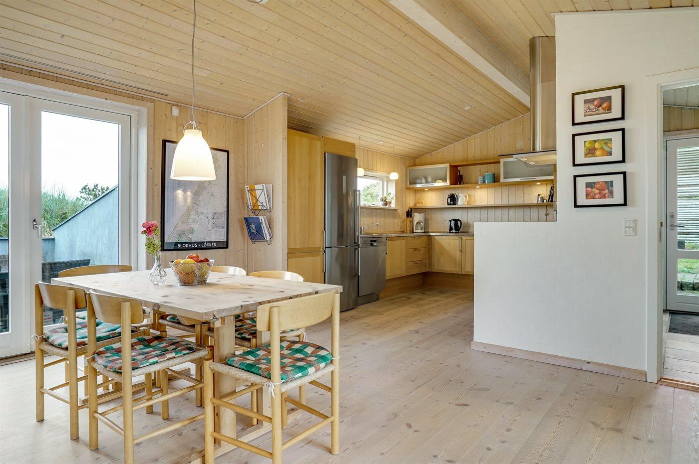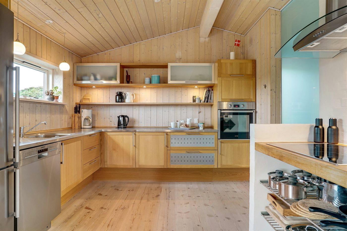 Køkkenet er udstyret med 1 køleskab. Der er 4 keramiske kogeplader, varmluftovn, mikrobølgeovn samt opvaskemaskine.