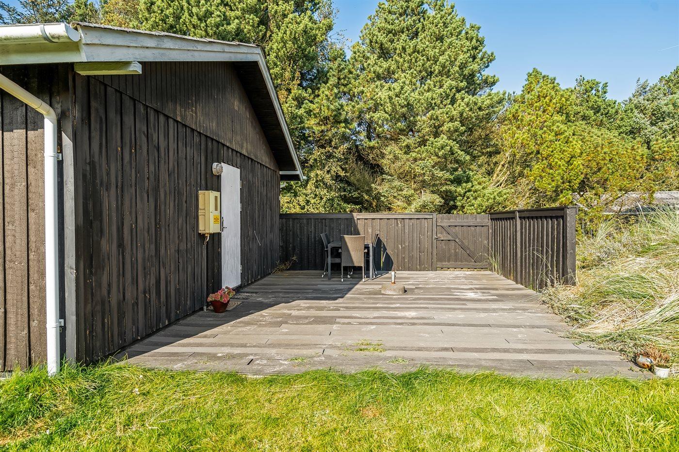 Ferieboligen er beliggende på en 1300 m² stor naturgrund. Der er 700 m til havet. Nærmeste forretning er beliggende i en afstand af 4000 m. Der er en golfbane i en afstand af 9000 m. Til ferieboligen hører 50 m² terrasseareal. Der er redskabsrum. Parkering ved ferieboligen.