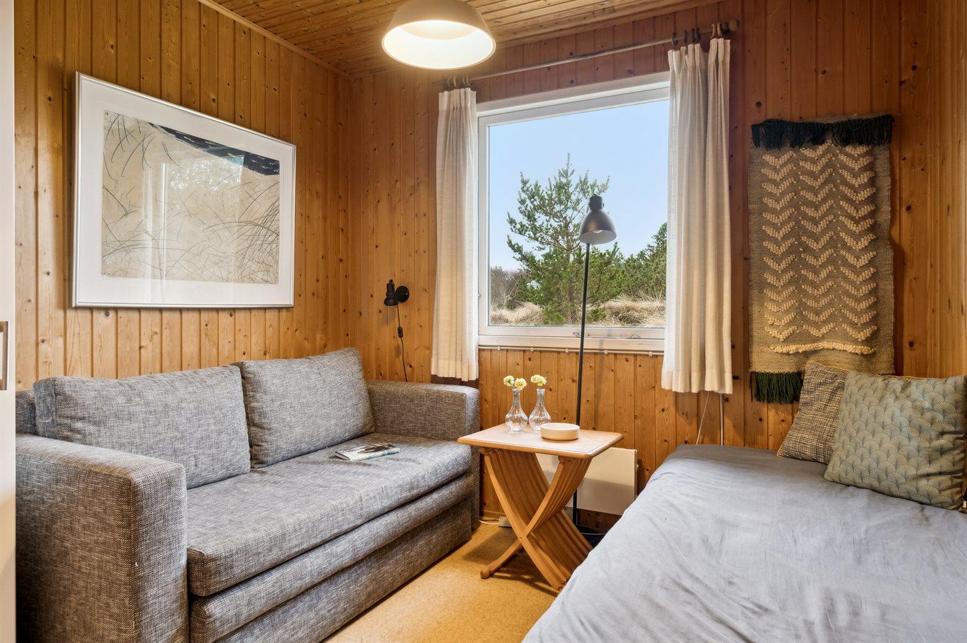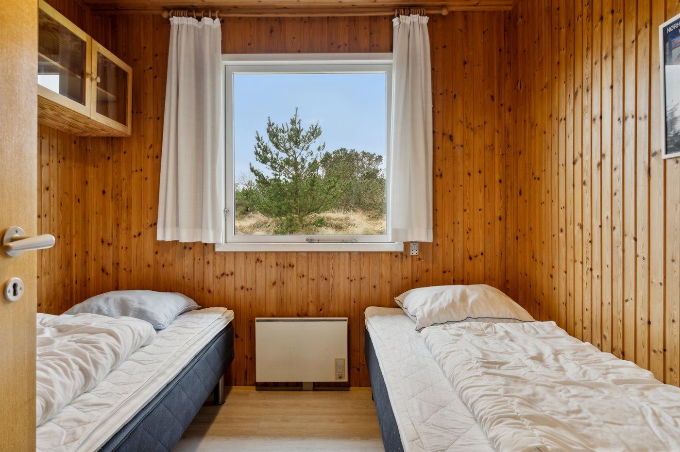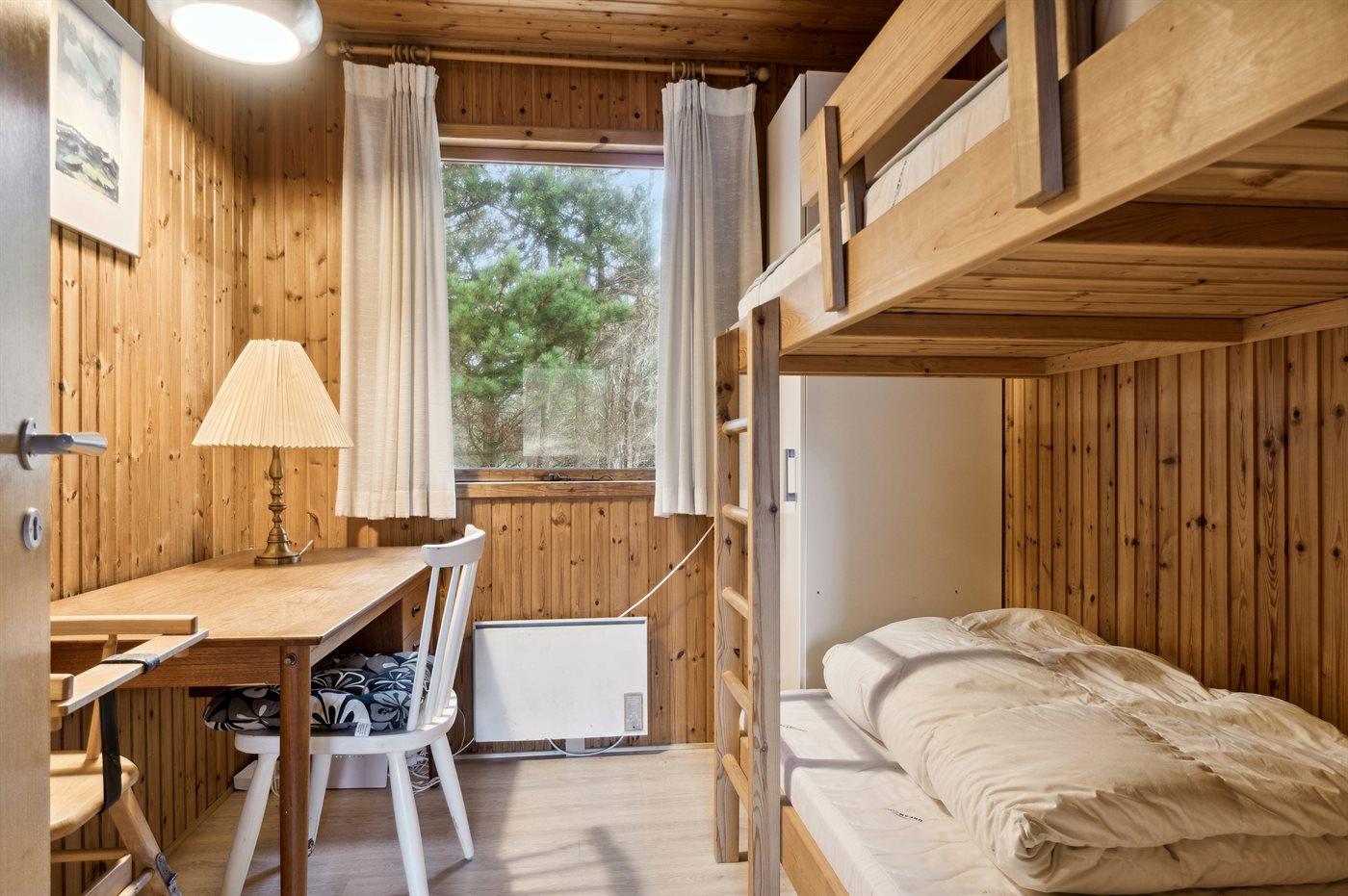 Der er i alt 4 soveværelser. Sovepladserne fordeler sig på: 2 sovepladser i dobbeltseng. 3 sovepladser i enkeltsenge. 2 sovepladser i køjeseng.