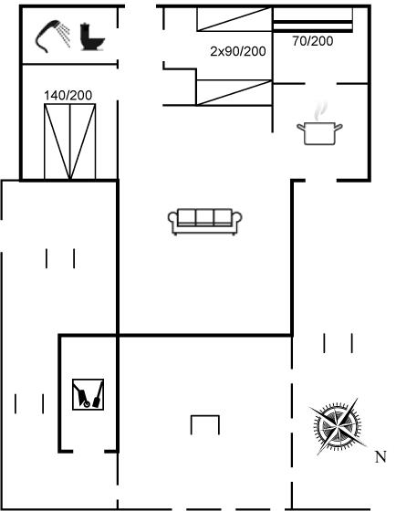 Der er i alt 3 soveværelser. Sovepladserne fordeler sig på: 2 sovepladser i dobbeltseng. 2 sovepladser i enkeltsenge. 2 sovepladser i køjeseng.