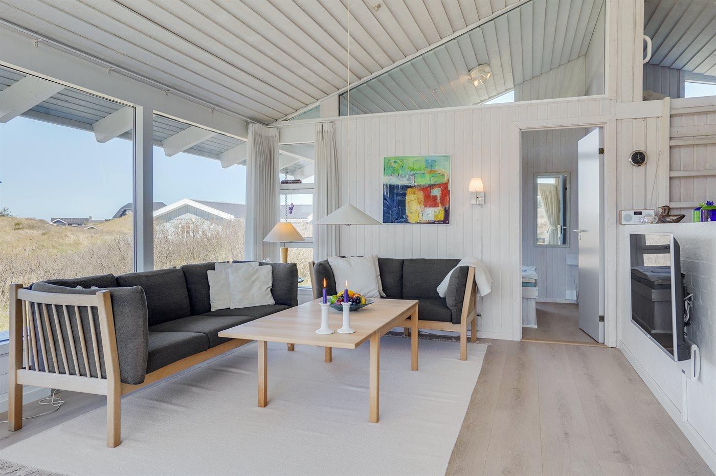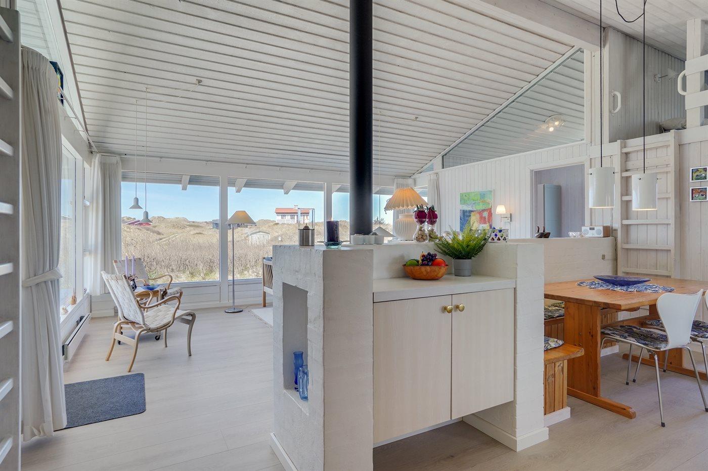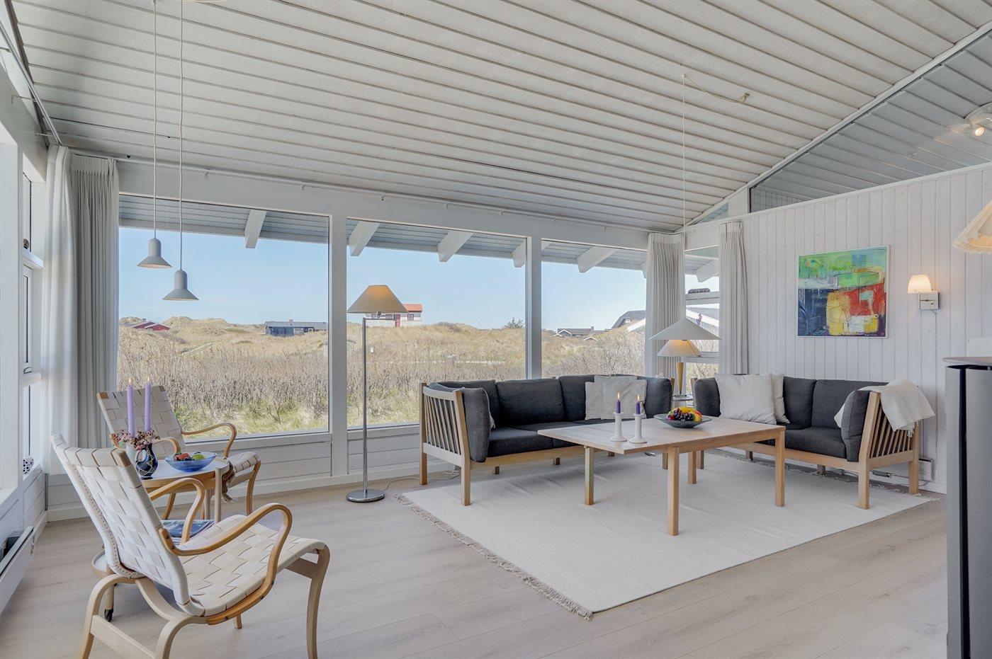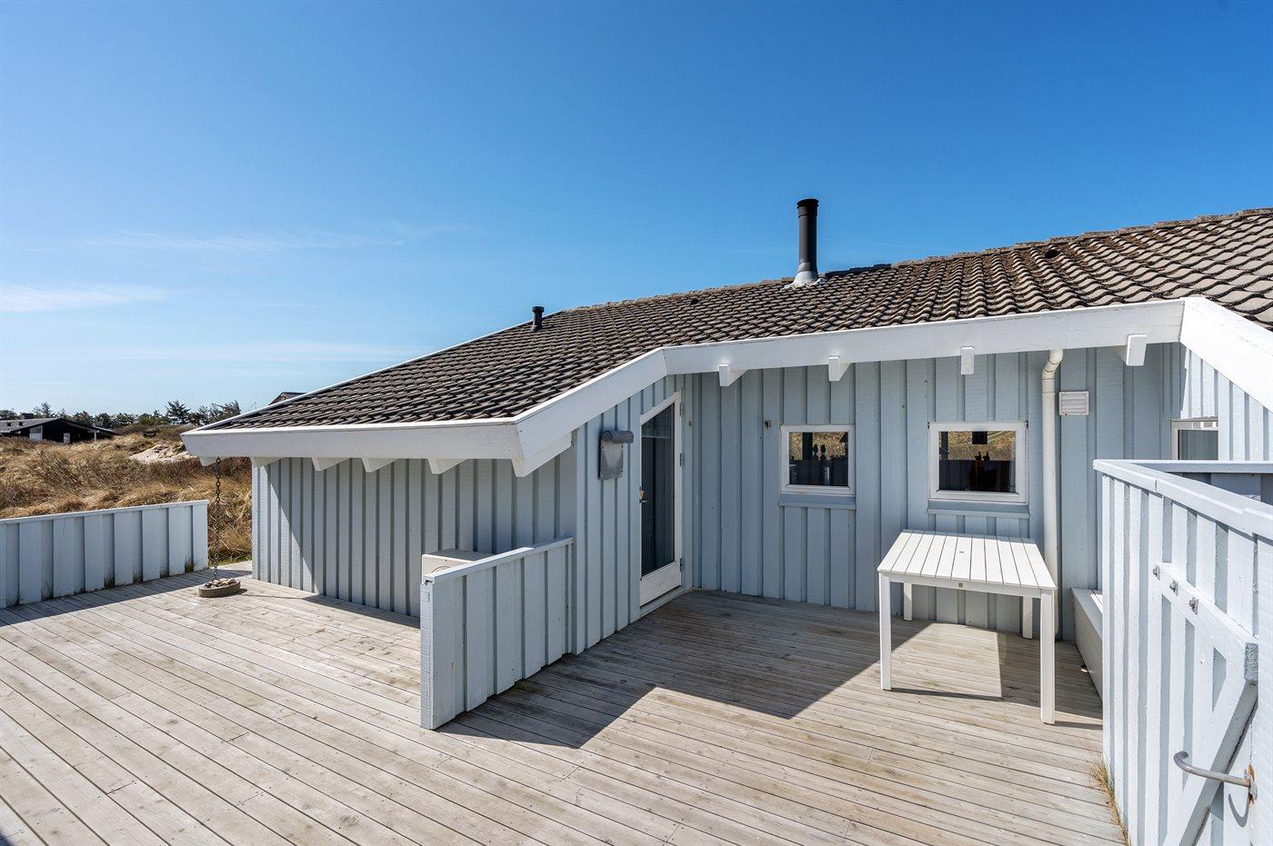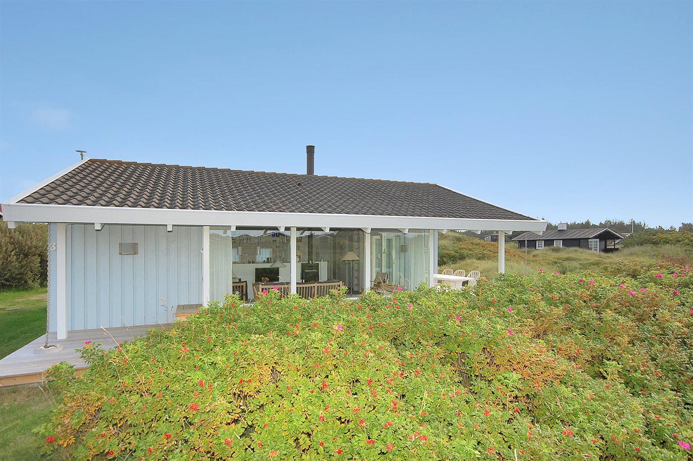 Dejligt sommerhus beliggende i et roligt klitområde på en stor og kuperet grund tæt på havet og god badestrand. Skønne terrassearealer på flere sider af huset gør det muligt at finde læ for vinden og nyde udsigten.