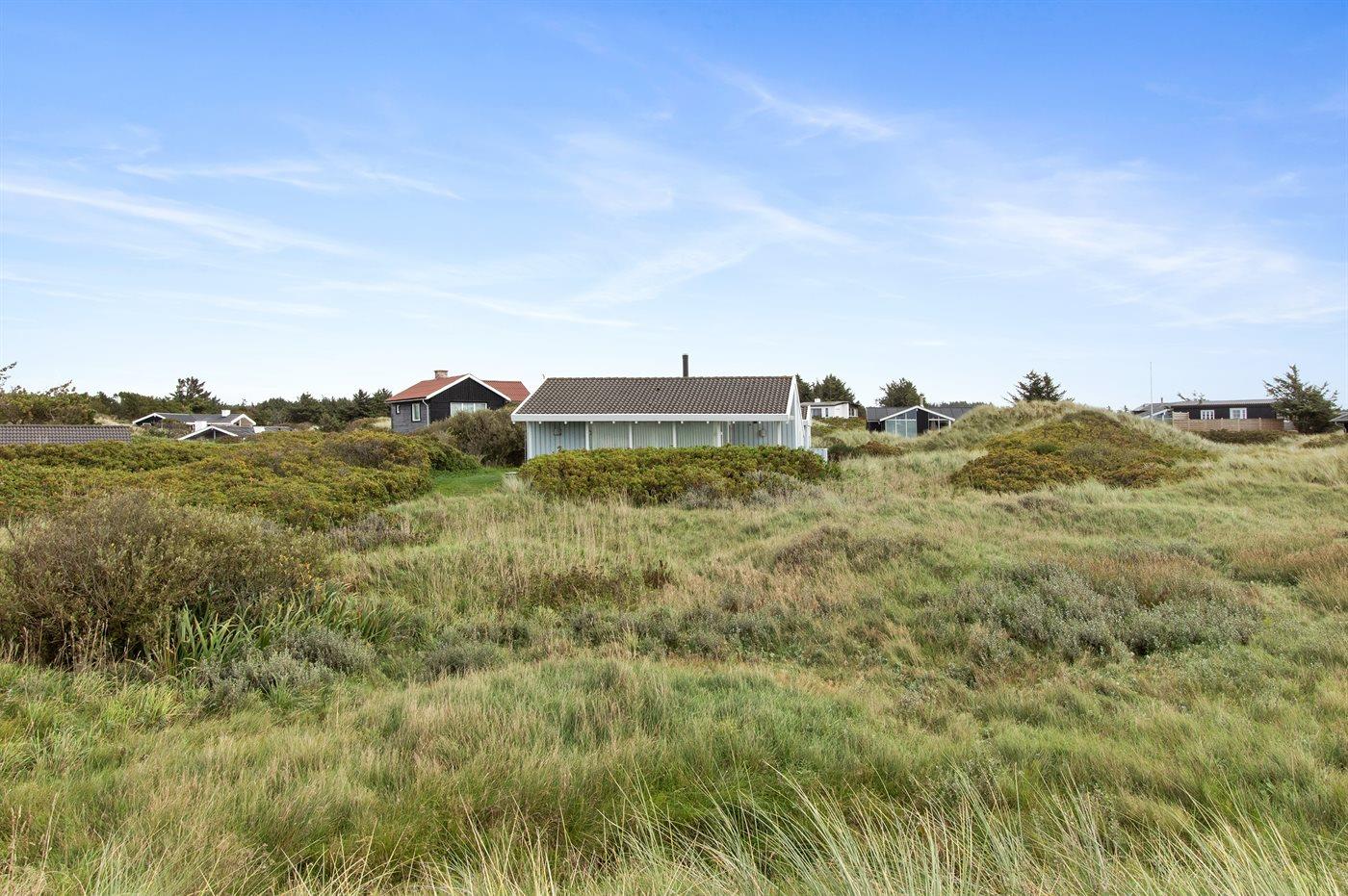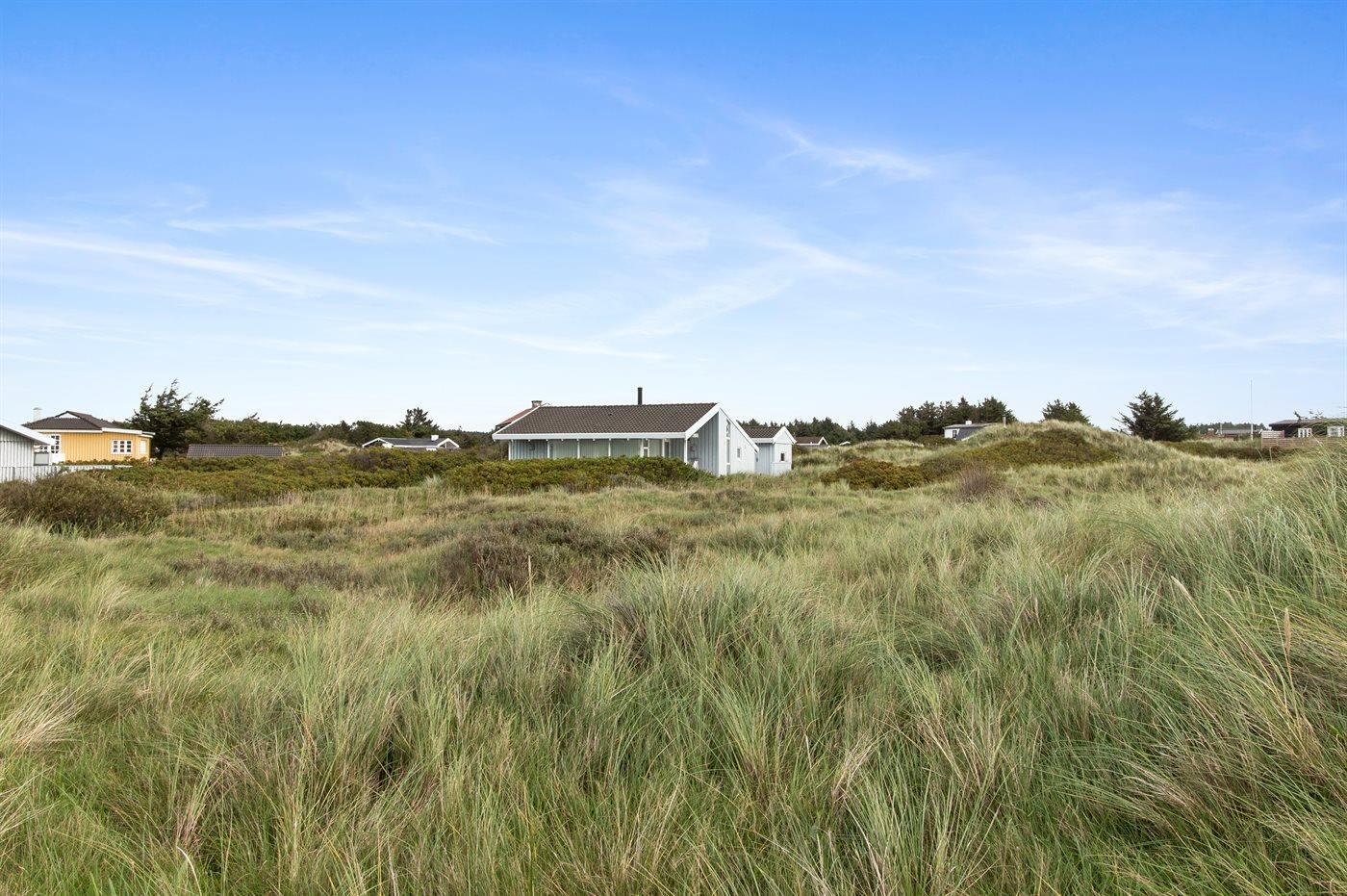 Ferieboligen er beliggende på en 2000 m² stor klitgrund. Der er 400 m til havet. Nærmeste forretning er beliggende i en afstand af 3000 m. Til ferieboligen hører 30 m² terrasseareal. Desuden er der 15 m² overdækket terrasse. Der er redskabsrum. Der er garage til rådighed. Der er installeret stik til opladning af elbil.
