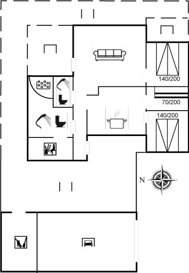 Sommerhuset egner sig til 6 personer samt 1 barn op til 3 år. Ferieboligen er på 88 m² og er bygget i 1985. I 1991 gennemgik ferieboligen en delvis renovering. Det er tilladt at medbringe 1 husdyr. Ferieboligen er udstyret med energibesparende varmepumpe. Ferieboligen har vaskemaskine. Frysekapacitet på 50 liter. Der er desuden brændeovn. Til de små er der 1 stk. barnestol.