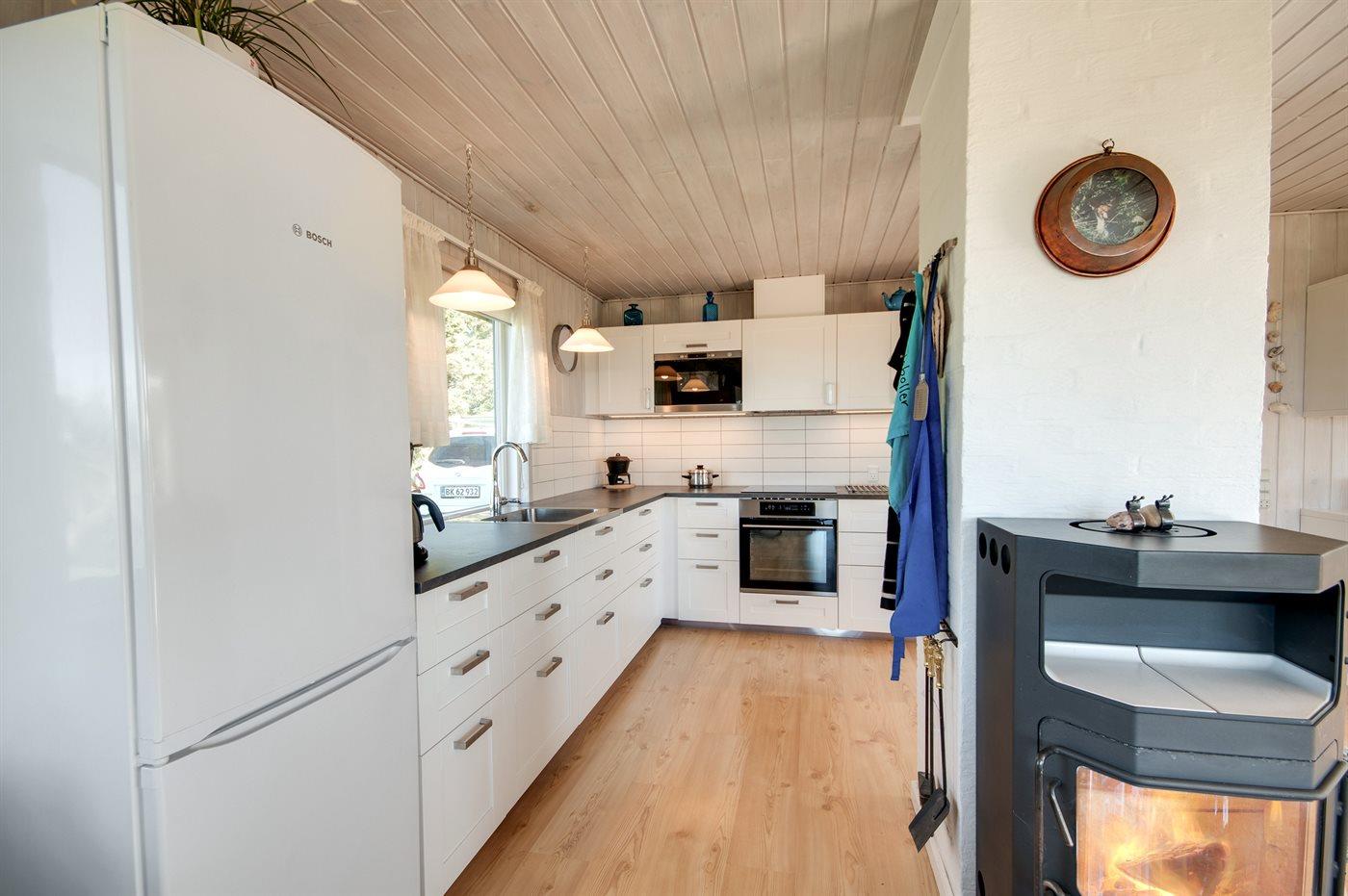 Nyt køkken fra 2017. Køkkenet er udstyret med 1 køleskab. Der er 4 keramiske kogeplader, varmluftovn, mikrobølgeovn samt opvaskemaskine.