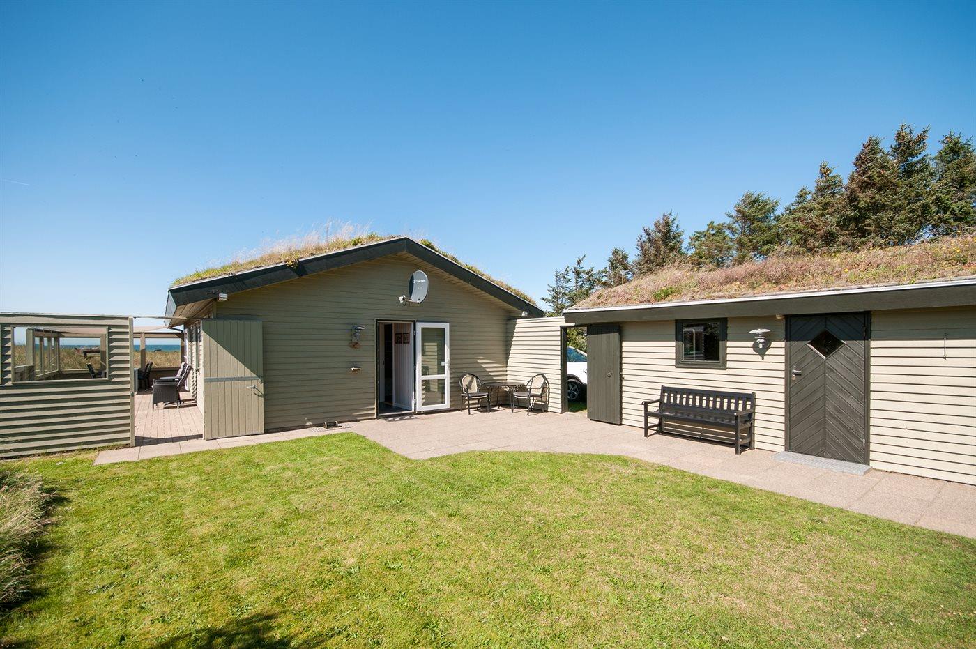 Ferieboligen er beliggende på en 4300 m² stor klitgrund. Der er 400 m til havet. Nærmeste forretning er beliggende i en afstand af 2500 m. Til ferieboligen hører 30 m² terrasseareal. Heraf i alt 10 m² lukket terrasse. Der er redskabsrum. Grill til rådighed. Solsejl. Parkering ved ferieboligen.