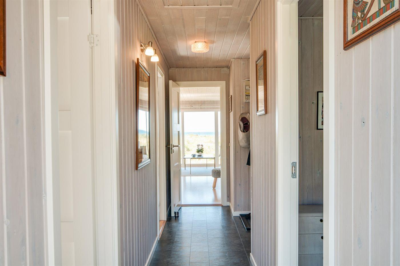 Højt beliggende med en storslået udsigt over området og Vesterhavet ligger dette skønne og velholdte sommerhus, helt ugenert for enden af blind vej, i et roligt og naturskønt område tæt på naturområdet "Lille Norge" med sti direkte til stranden. Til huset hører et ekstra opholdsrum/legerum i anneksbygning.