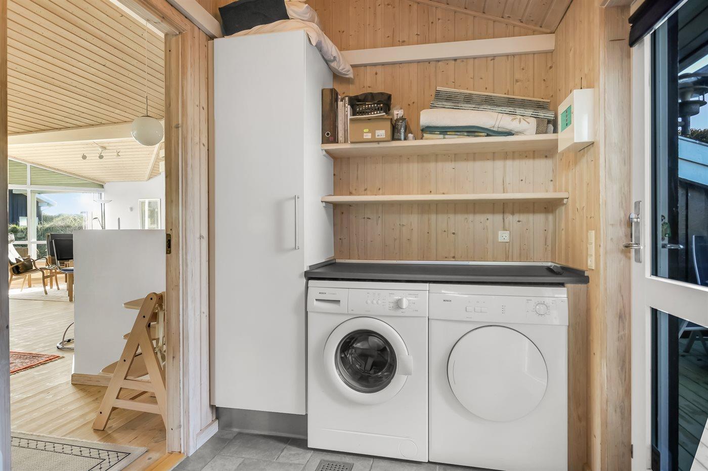 Moderne køkken med opvaskemaskine, fryser, mikrobølgeovn samt komfur med keramiske kogeplader og varmluftovn. I opholdsstuen er der brændeovn, fladskærms-TV med parabol (digital) og surroundsystem, Chromecast, DVD-afspiller og stereoanlæg med CD-afspiller.