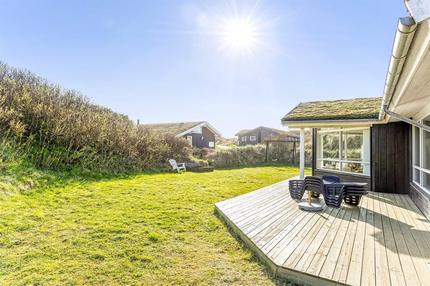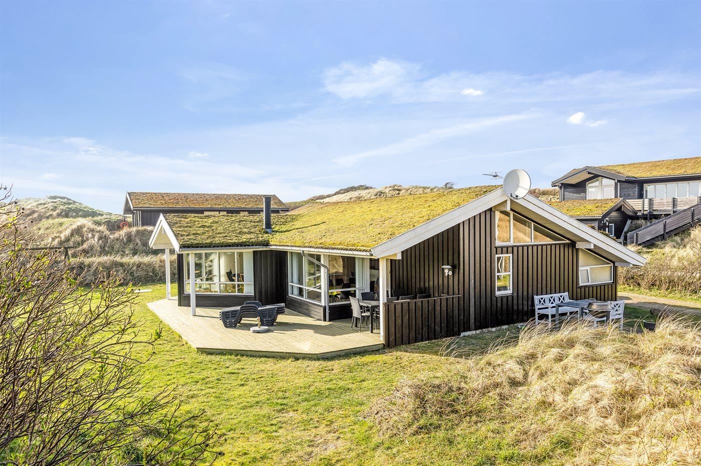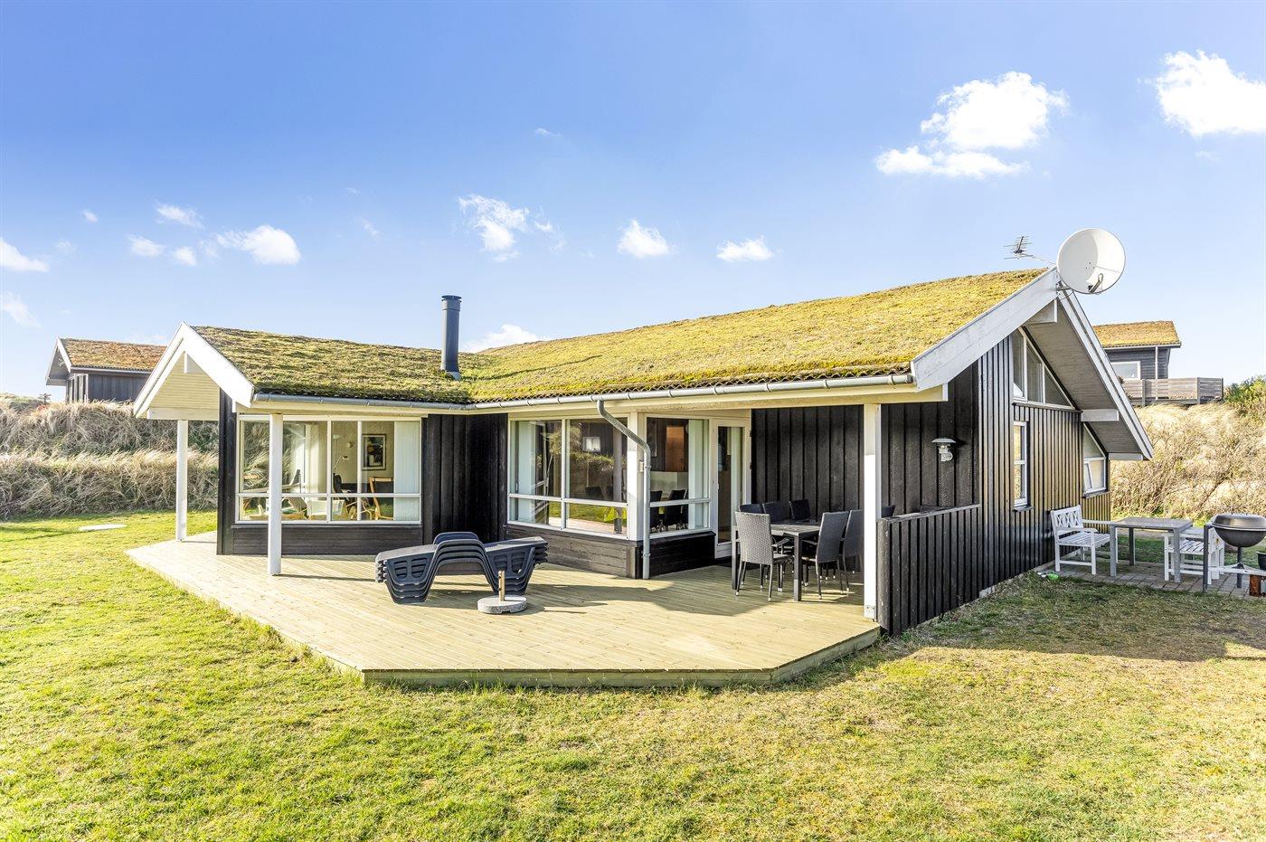 Et skønt sommerhus i træ, opført 2006, beliggende på en dejlig natur- og klitgrund, kun 100 m fra en af Danmarks bedste badestrande. Fra grundens højeste punkt er der en flot udsigt over området og Vesterhavet. Såvel åben som overdækket terrasse.