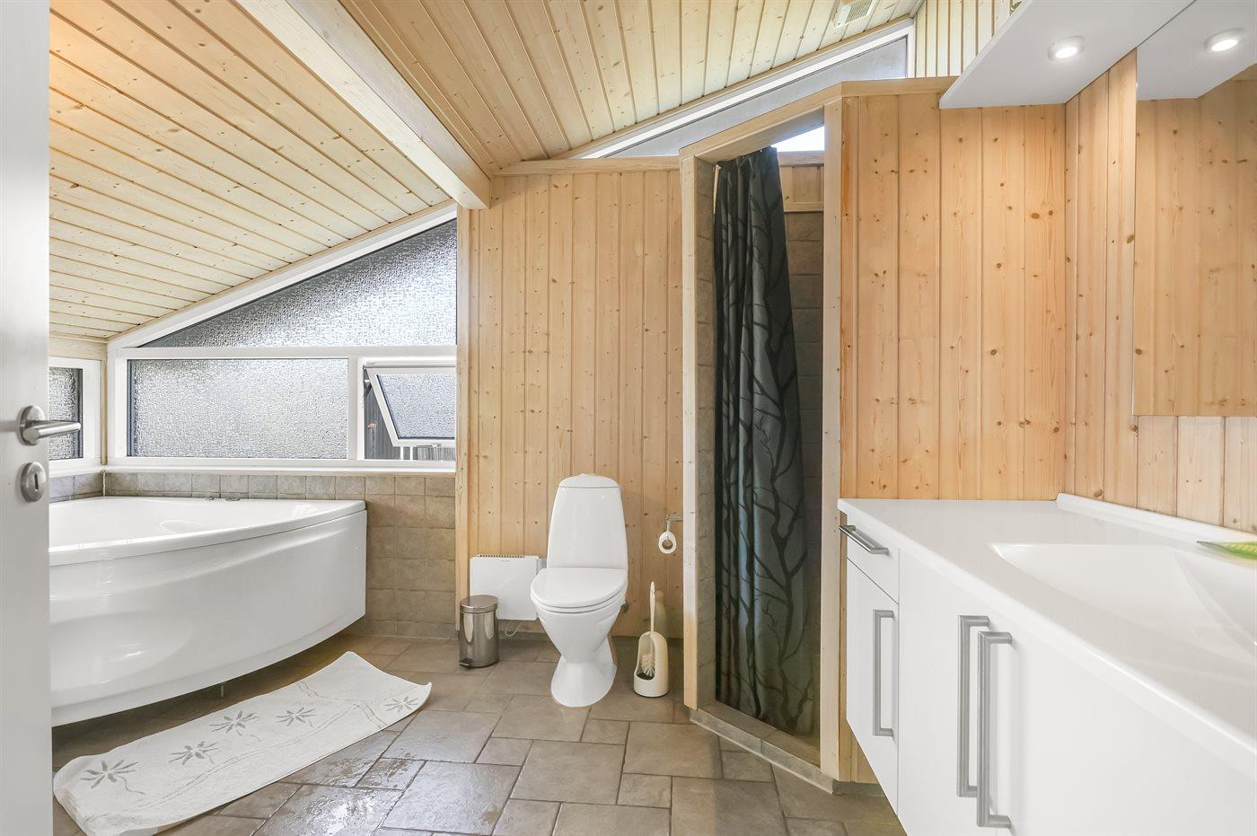 Lyse vægge og lofter. Flotte gulve af fyrretræ. Opvarmet klinkegulv i køkken, badeværelser og gangareal. Badeværelse med 2-pers.spa, sauna og bruseniche. Ekstra badeværelse med bruseniche. Vaskemaskine og tørretumbler forefindes i gang.