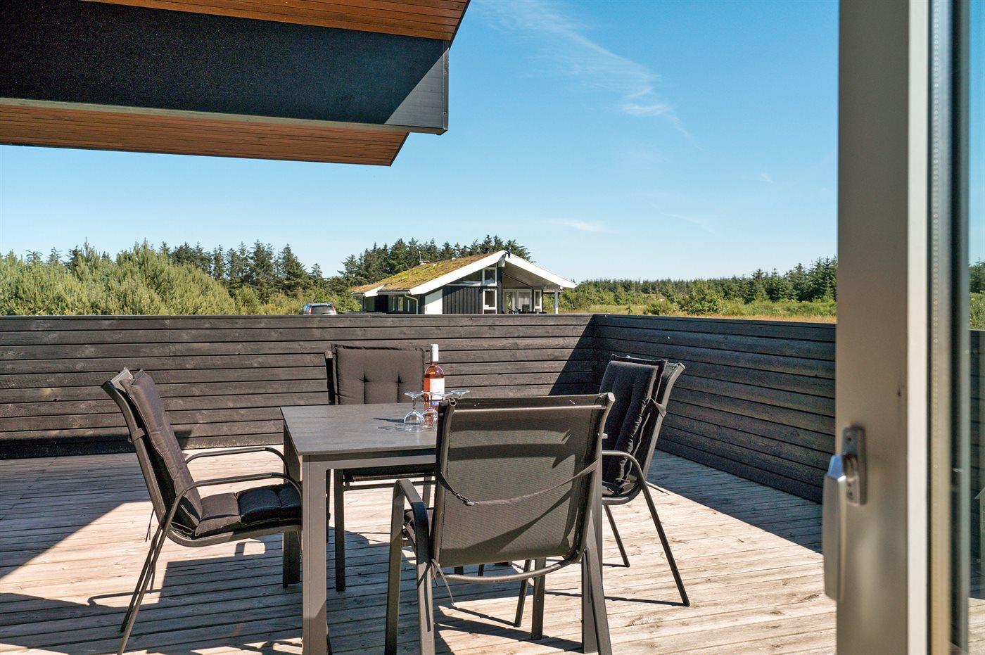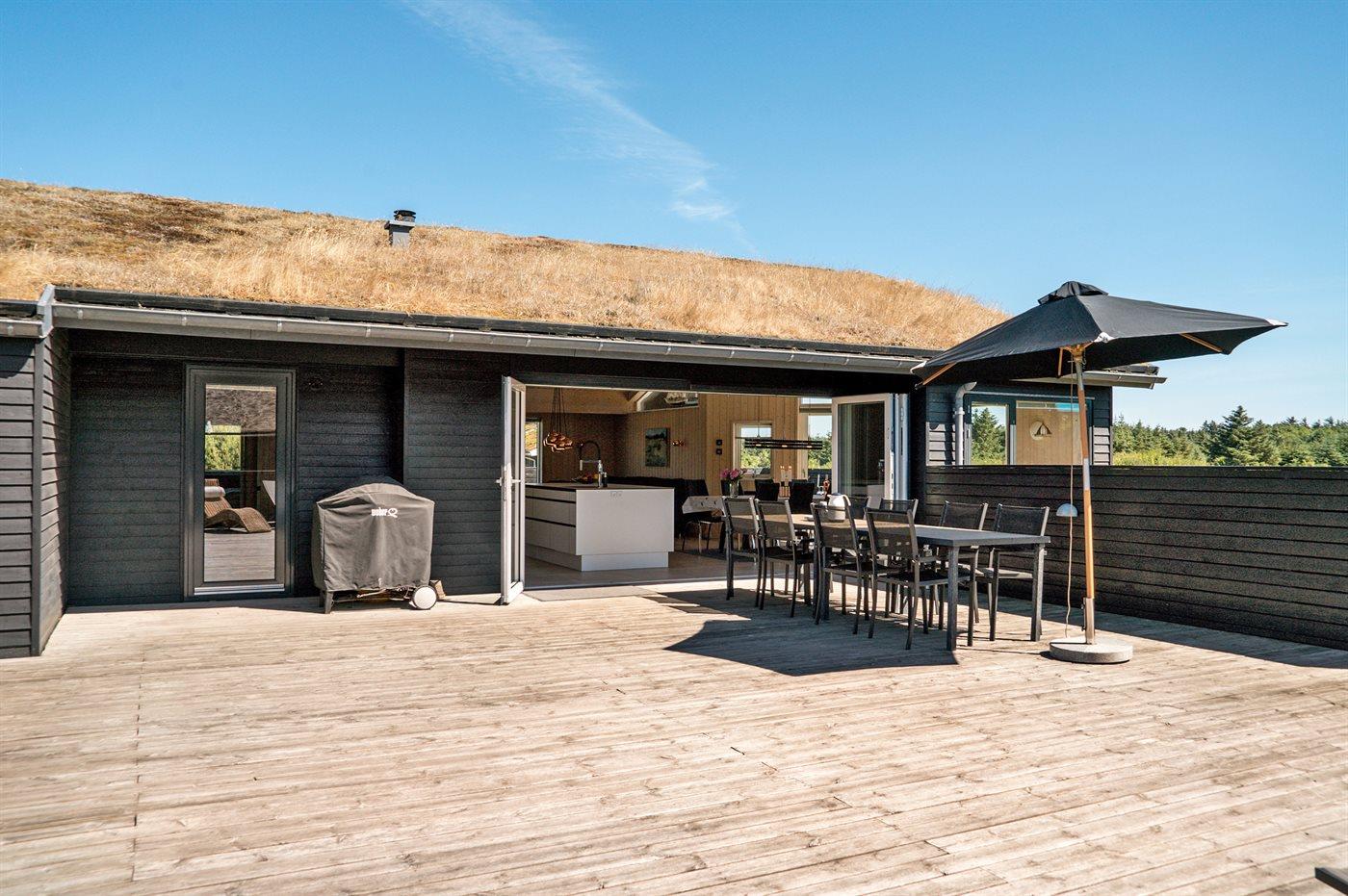 Luksuriøst træsommerhus med spa, sauna og stort terrasseområde nær Vesterhavet.