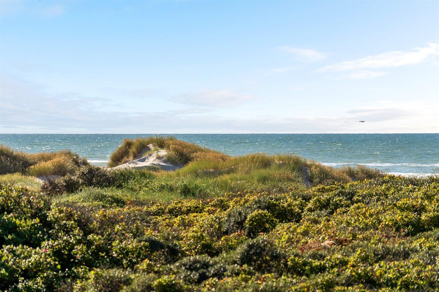 Rummeligt sommerhus på klitgrund med panoramaudsigt over Vesterhavet og indendørs pool.
