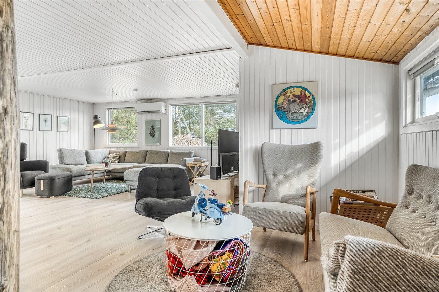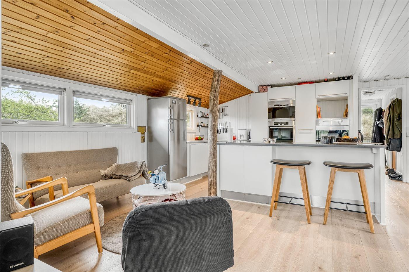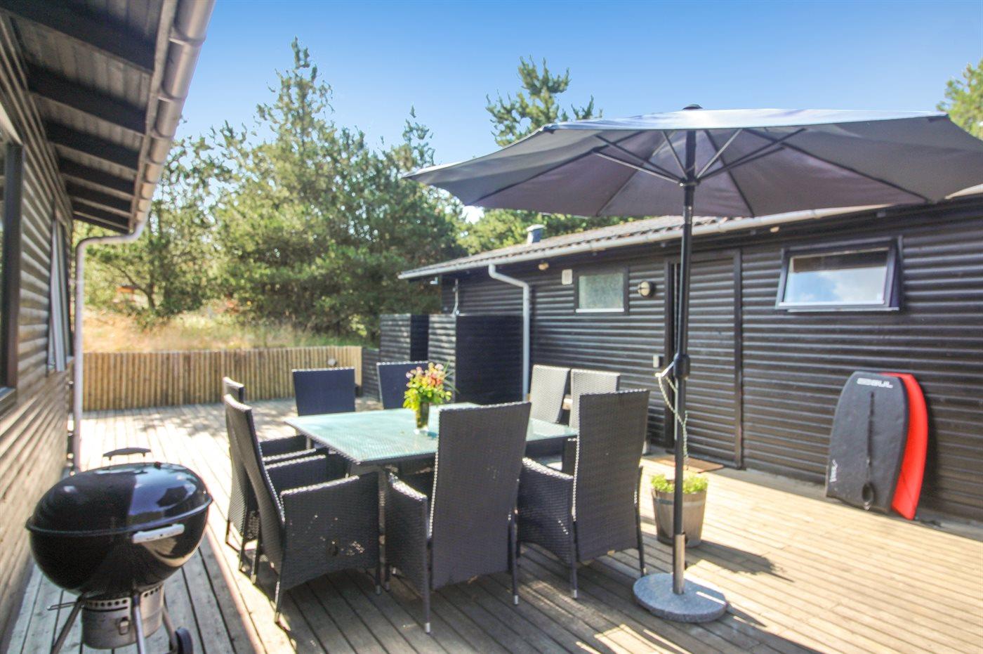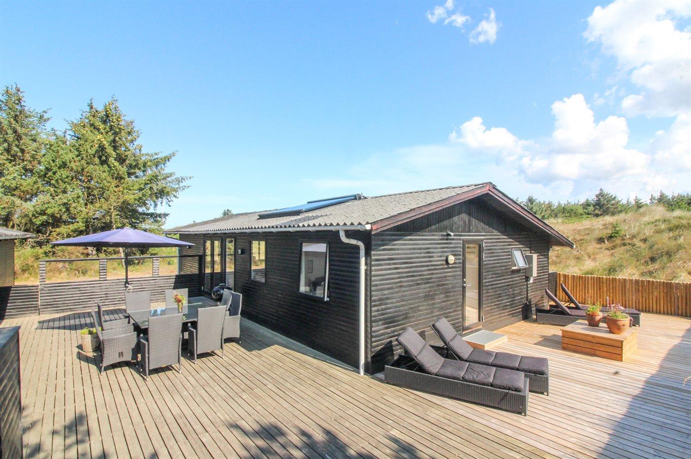 Et hyggeligt, ældre og rummeligt sommerhus beliggende på en meget stor og kuperet grund nær Vesterhavet og skøn badestrand. Fra grunden er der kig til havet, og på det store, lukkede terrasseareal er der en udendørsbruser og gode læforhold. Til huset hører et stort anneks med 2 af soveværelserne samt et stort badeværelse med spa og sauna.