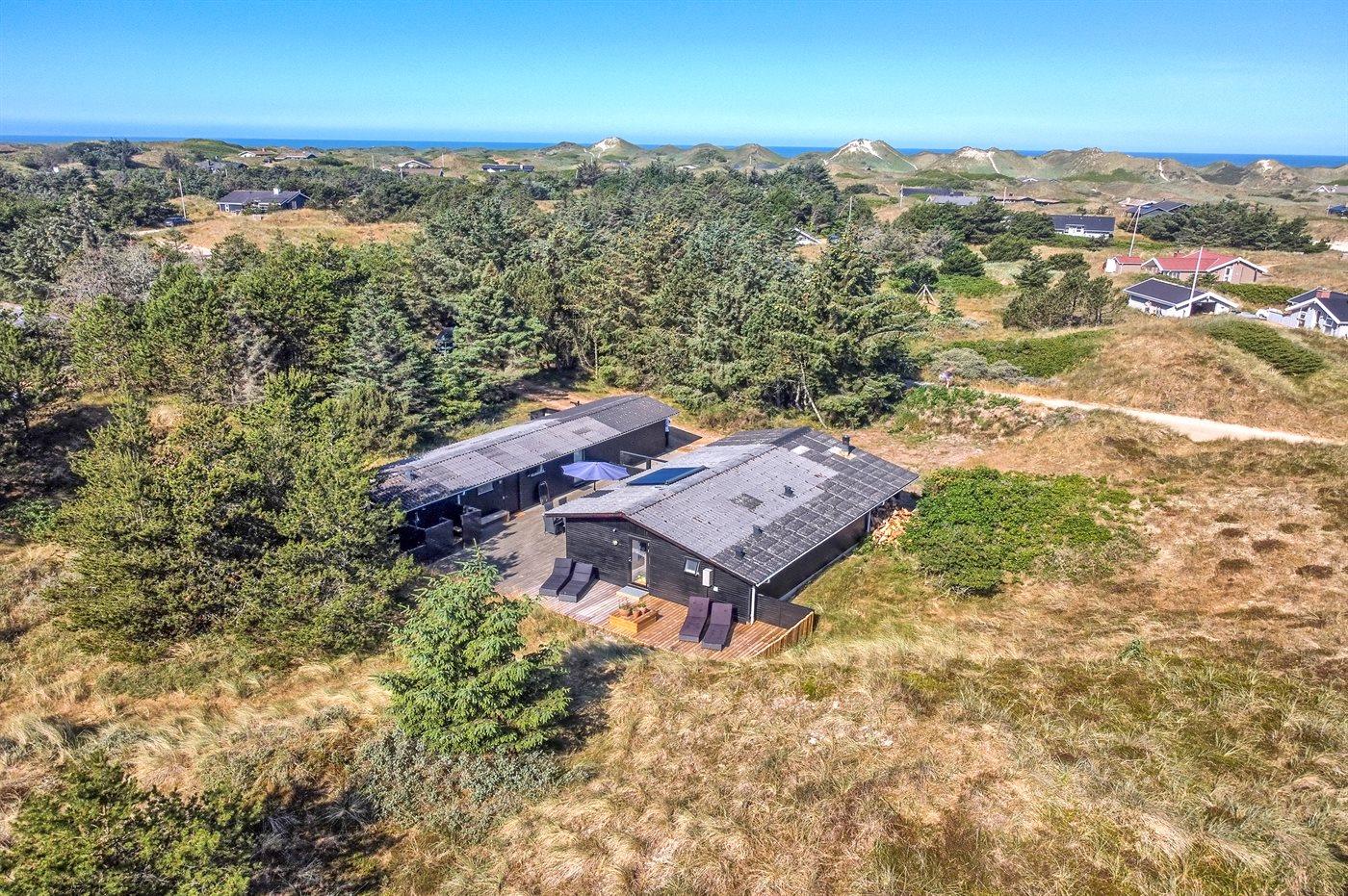 Ferieboligen er beliggende på en 2610 m² stor naturgrund. Der er 650 m til havet. Nærmeste forretning er beliggende i en afstand af 1200 m. Der er en golfbane i en afstand af 8000 m. Til ferieboligen hører 80 m² lukket terrasse. Der er redskabsrum. Udendørs bruser. Der er installeret stik til opladning af elbil. Parkering ved ferieboligen.
