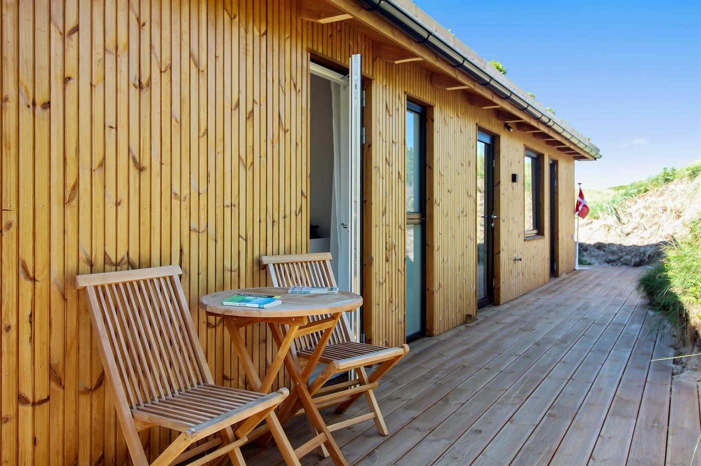 Ferieboligen er beliggende på en 1670 m² stor naturgrund. Der er 300 m til havet. Nærmeste forretning er beliggende i en afstand af 5500 m. Der er en golfbane i en afstand af 10000 m. Til ferieboligen hører 130 m² terrasseareal. Grill til rådighed. Parkering ved ferieboligen.