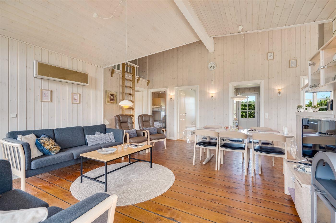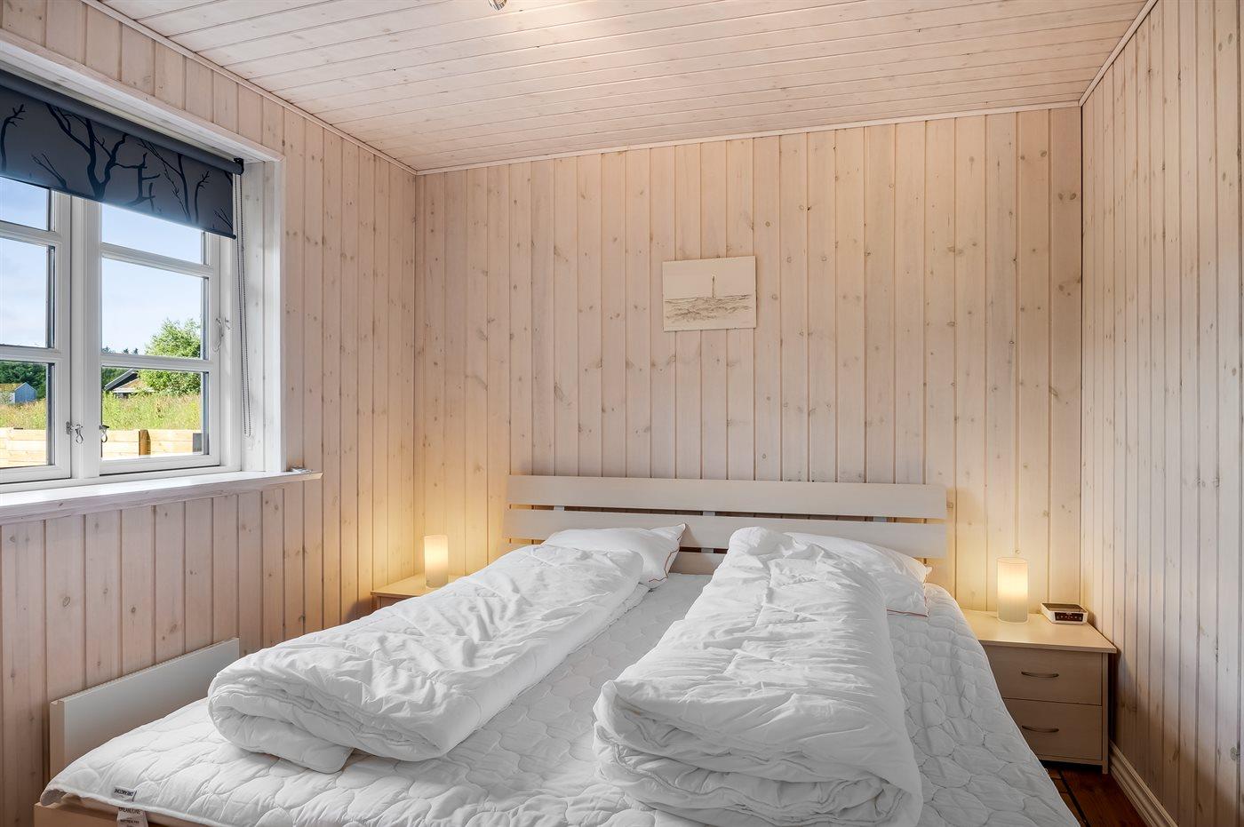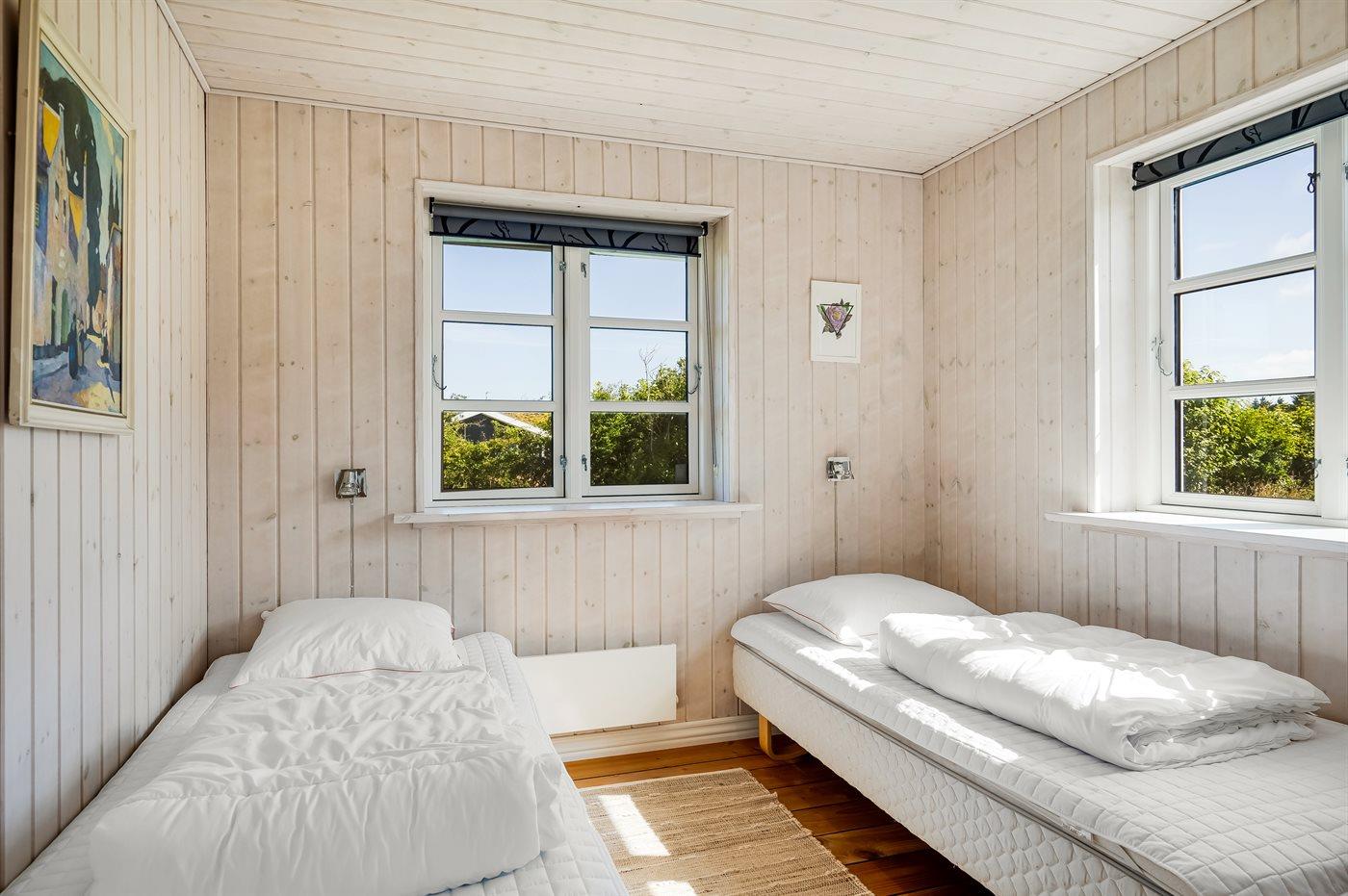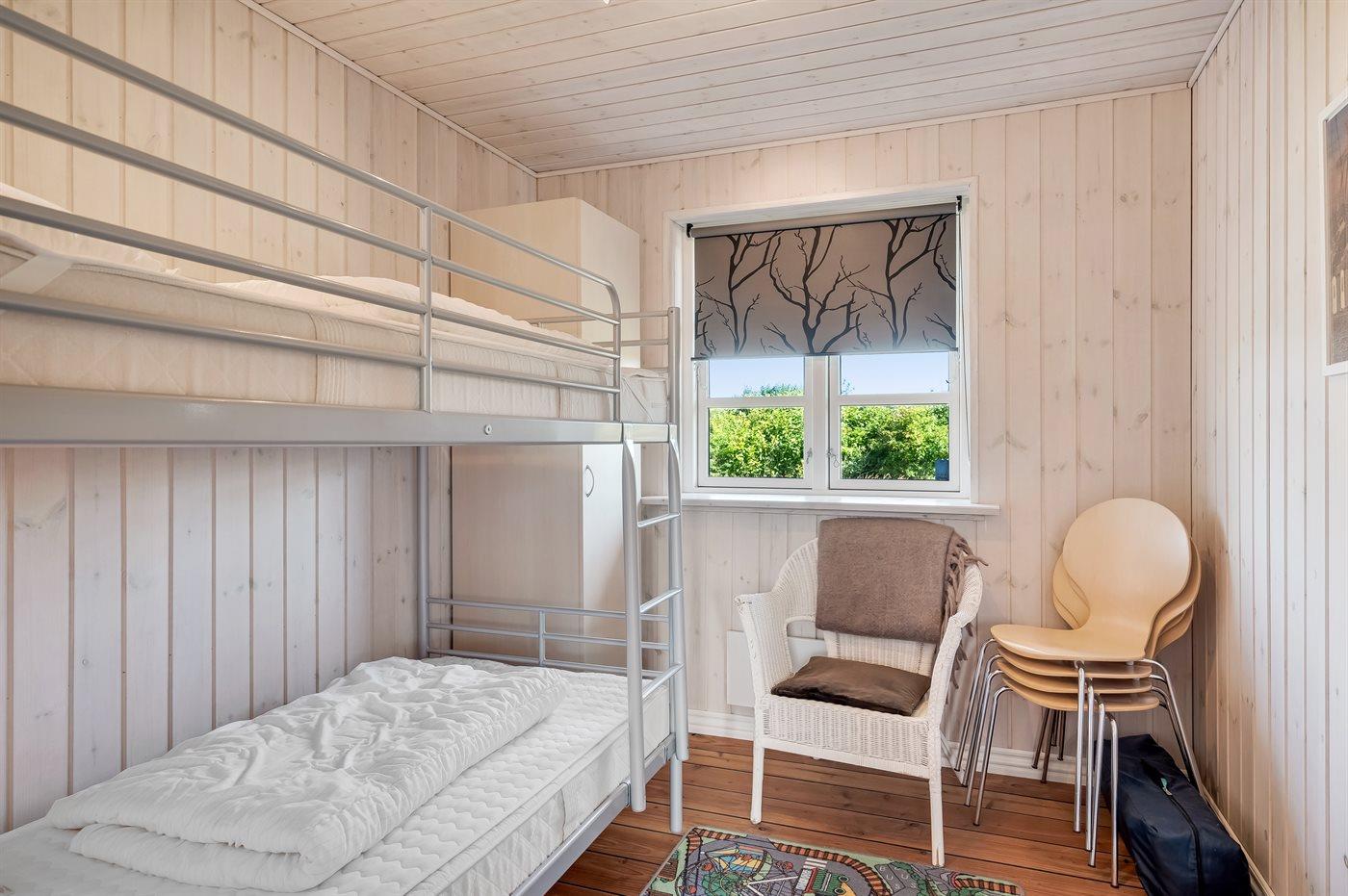 Der er i alt 3 soveværelser. Sovepladserne fordeler sig på: 2 sovepladser i dobbeltseng. 2 sovepladser i enkeltsenge. 2 sovepladser i køjeseng. Derudover er der 1 stk. barneseng.