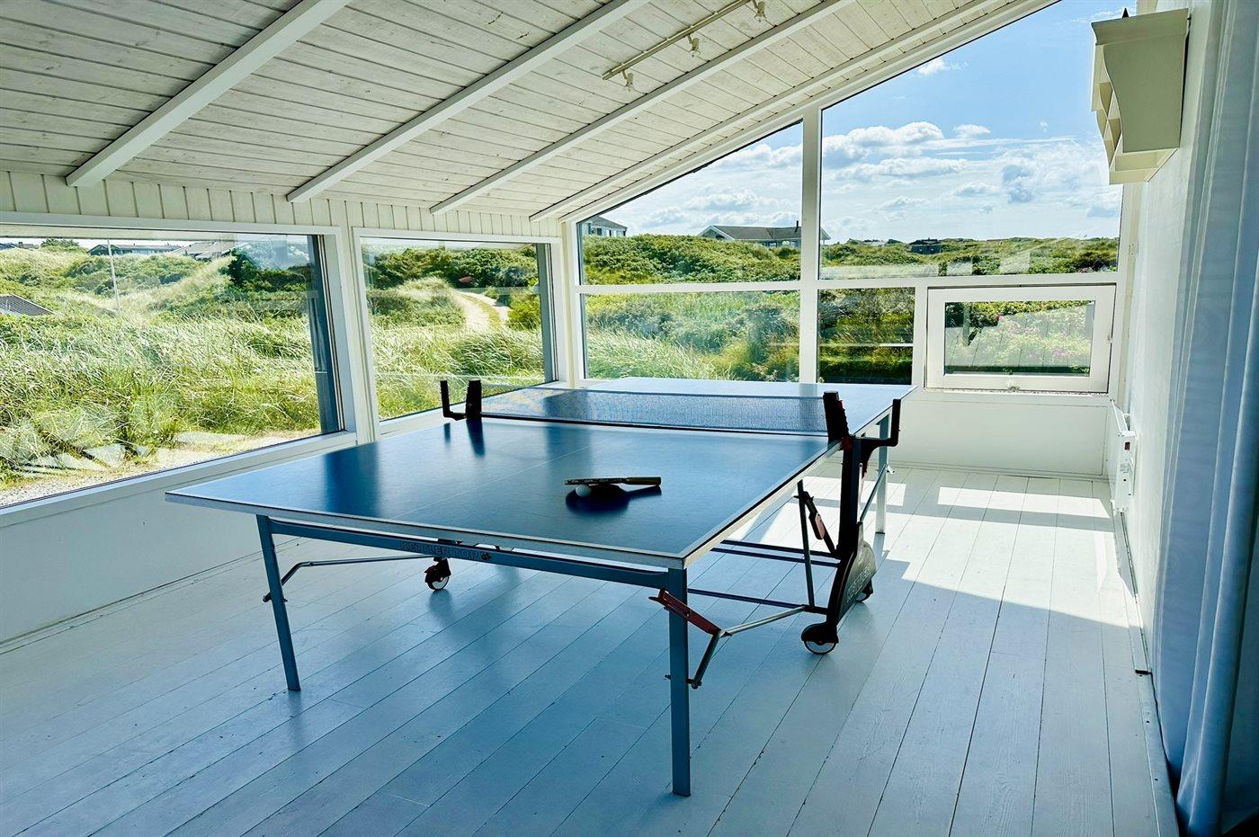 Aktivitetsrum med bordtennis – ideelt til både familieferier og ophold med venner. Brændeovnen i stuen skaber en hyggelig stemning på kølige aftener.
