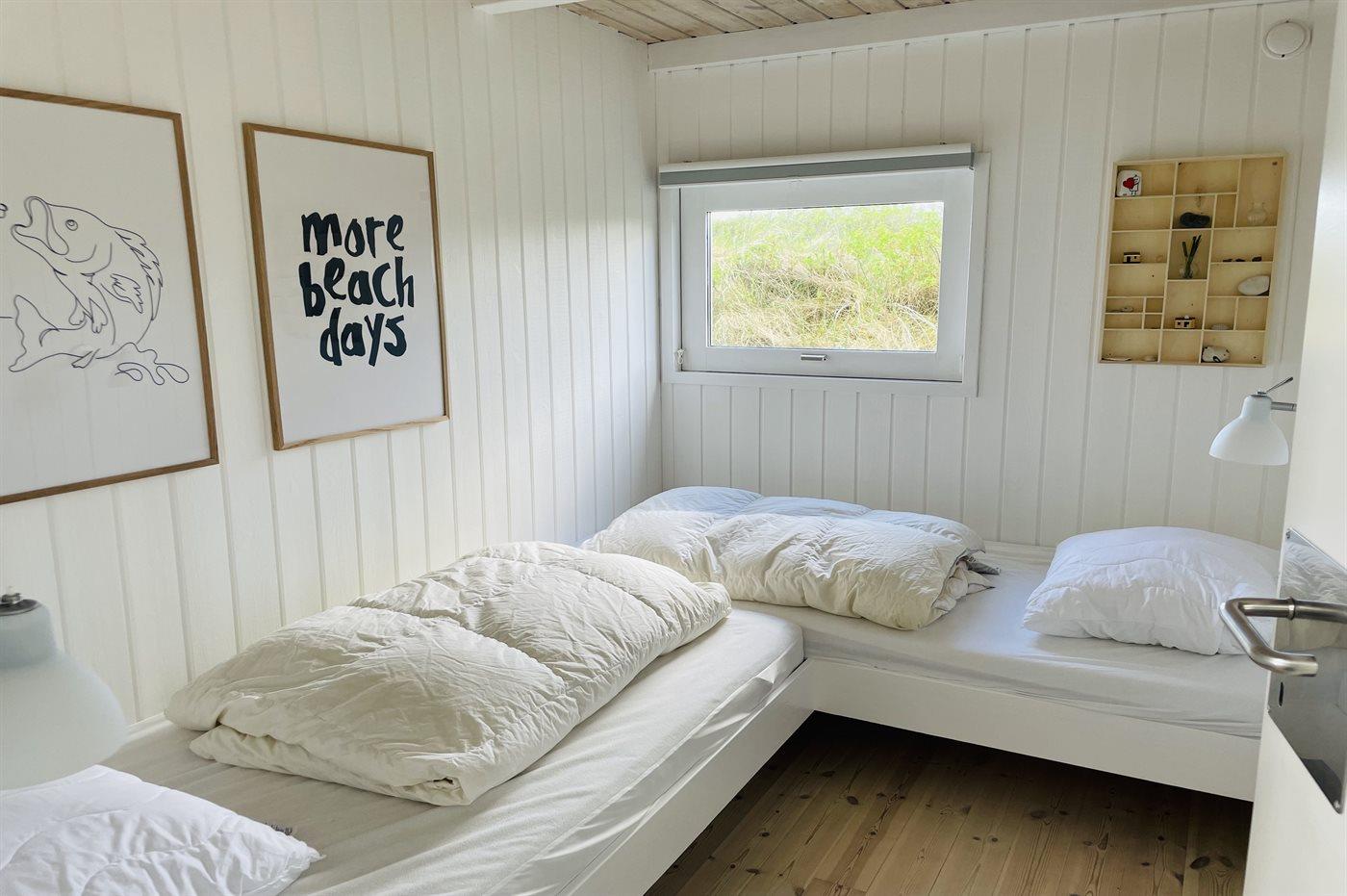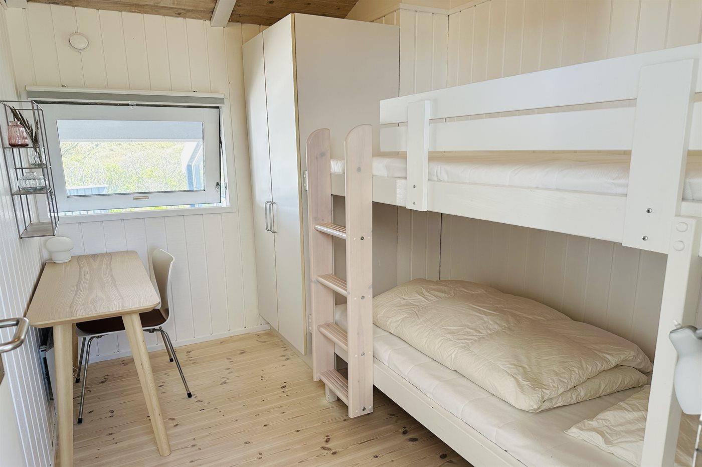 Der er i alt 4 soveværelser. Sovepladserne fordeler sig på: 4 sovepladser i dobbeltsenge. 2 sovepladser i enkeltsenge. 2 sovepladser i køjeseng. Derudover er der 1 stk. barneseng.