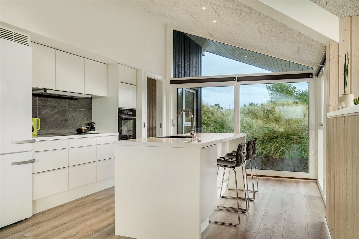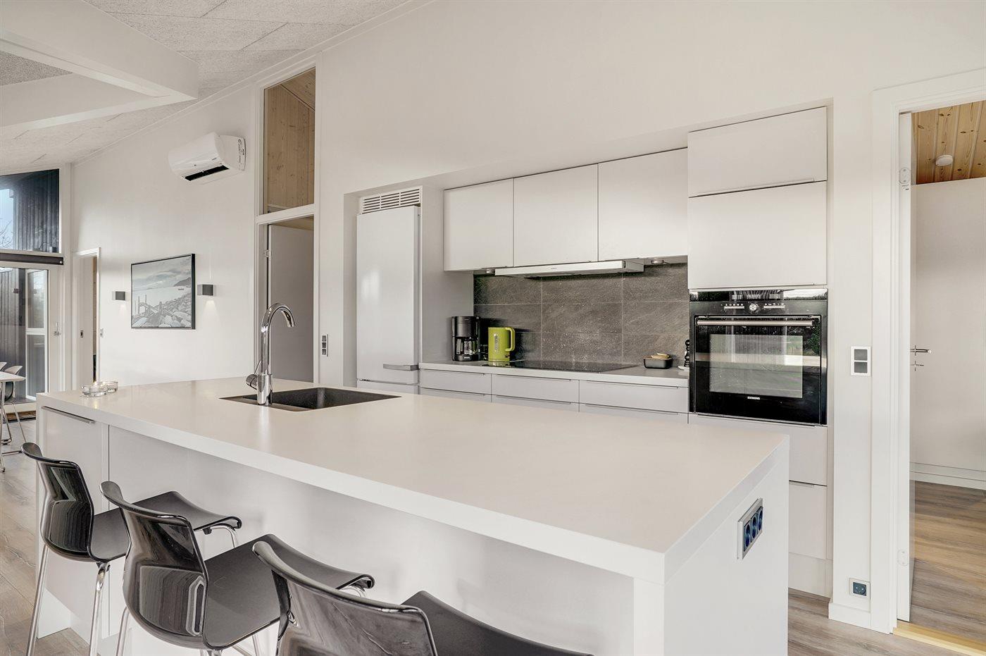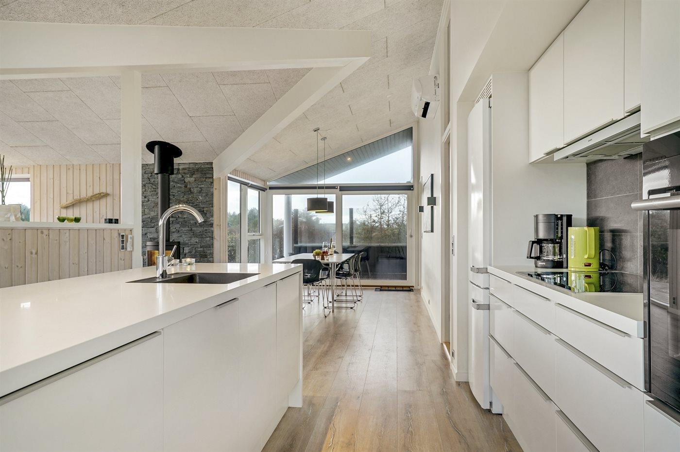 Køkkenet er udstyret med 1 køleskab. Der er 1 keramiske kogeplader, varmluftovn, mikrobølgeovn samt opvaskemaskine.