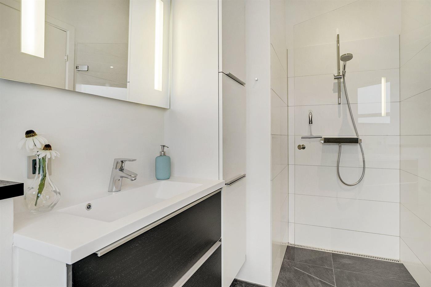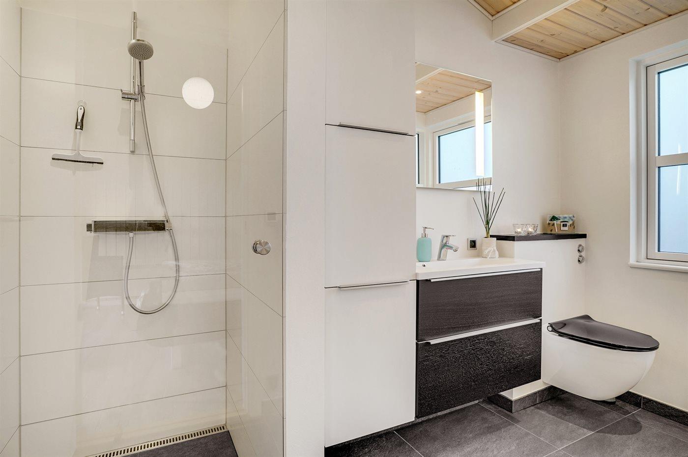 Der er 2 badeværelser med bruseniche og 2 toiletter. Der er gulvvarme på 2 badeværelser.