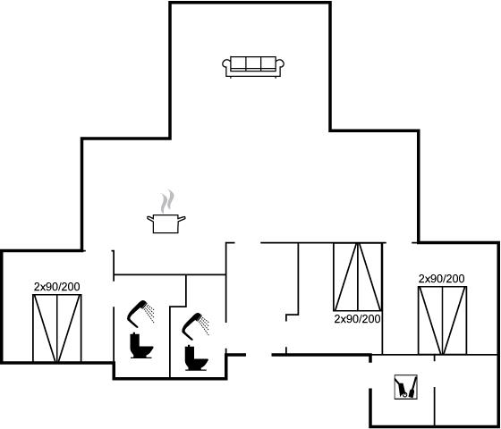 Der er i alt 3 soveværelser. Sovepladserne fordeler sig på: 6 sovepladser i dobbeltsenge.