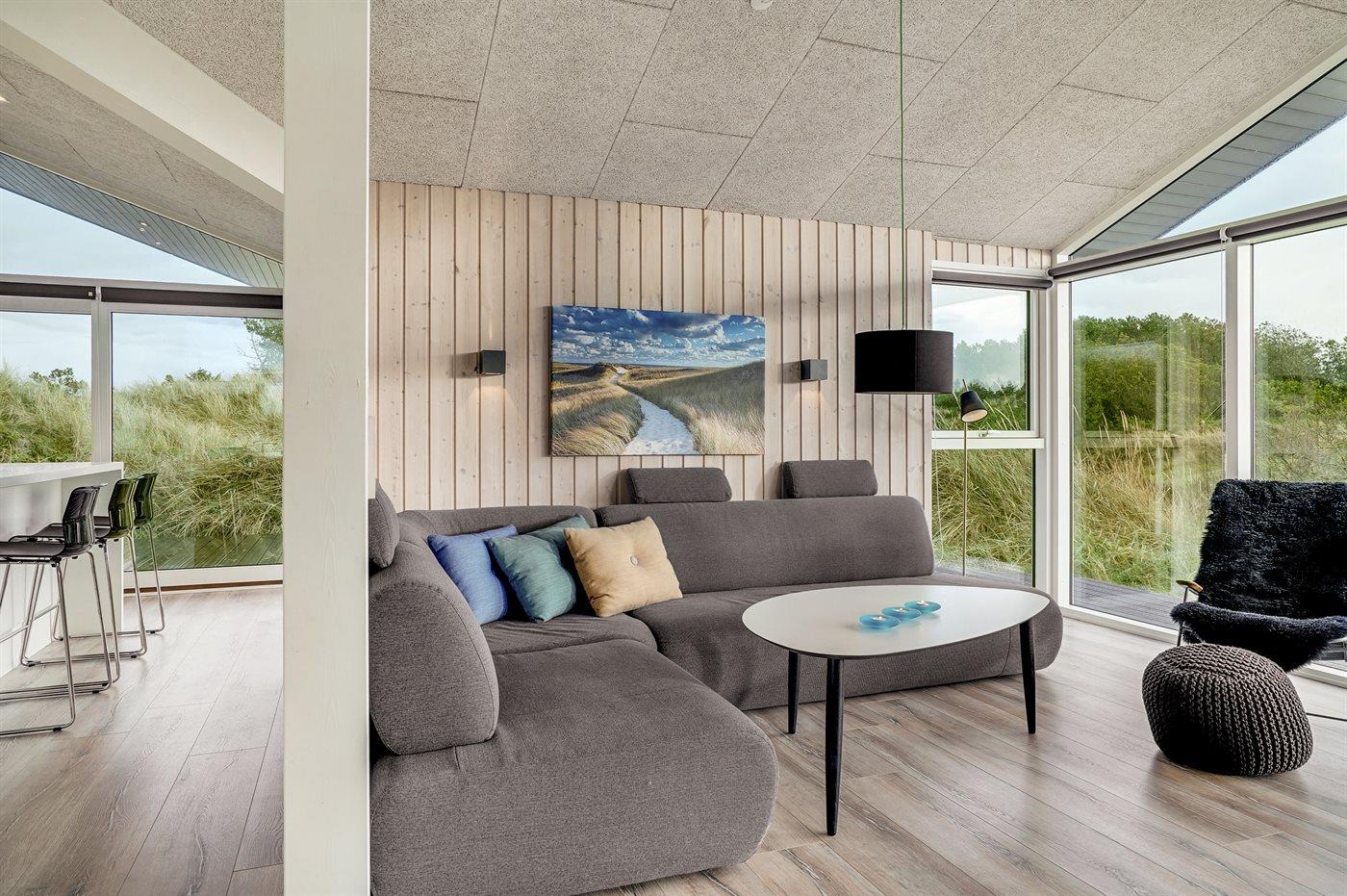 Ferieboligen er beliggende på en 2761 m² stor naturgrund. Der er 600 m til havet. Nærmeste forretning er beliggende i en afstand af 4000 m. Til ferieboligen hører 90 m² terrasseareal. Desuden er der 15 m² overdækket terrasse. Der er redskabsrum. Der er installeret stik til opladning af elbil. Parkering ved ferieboligen.