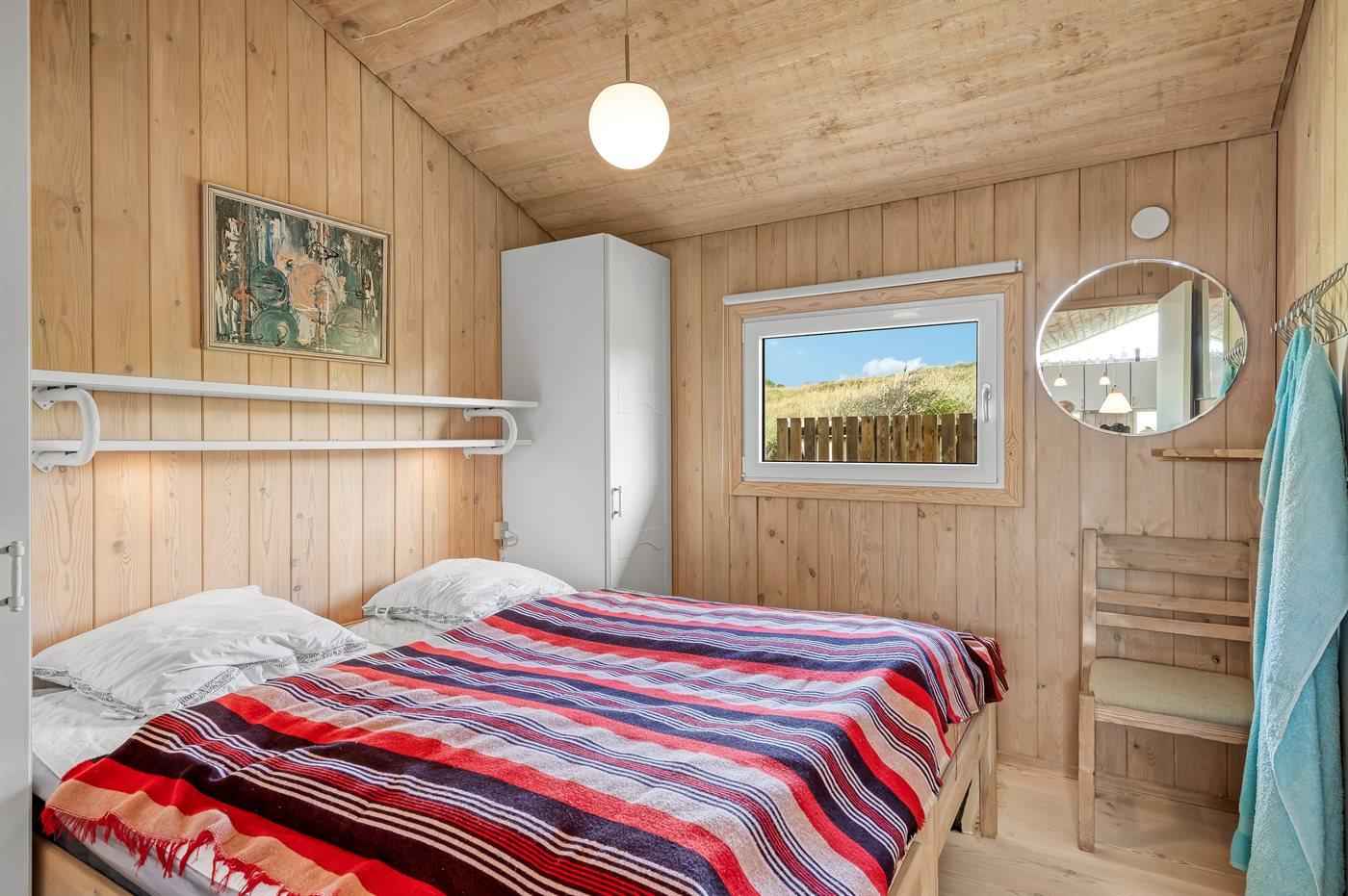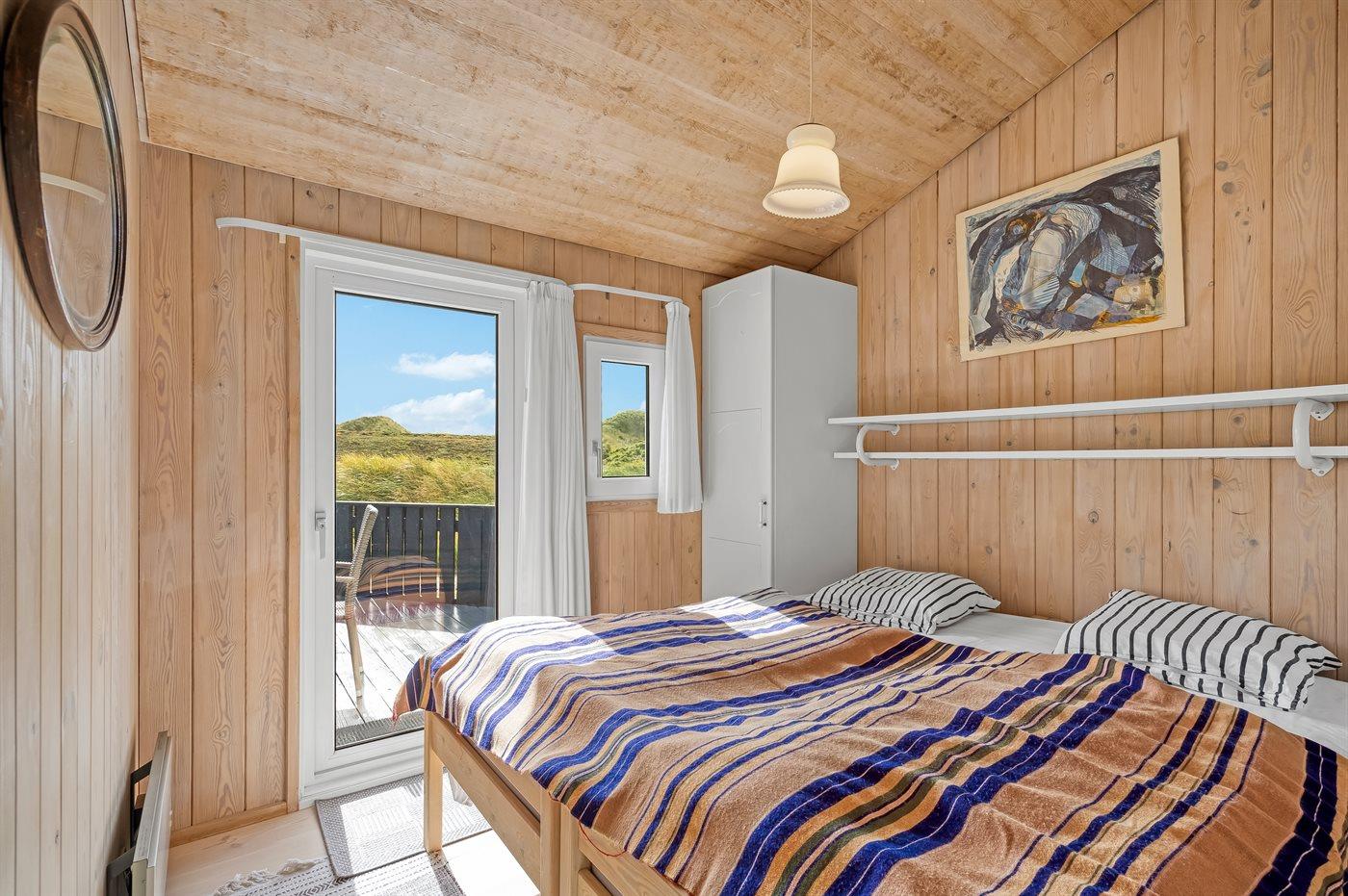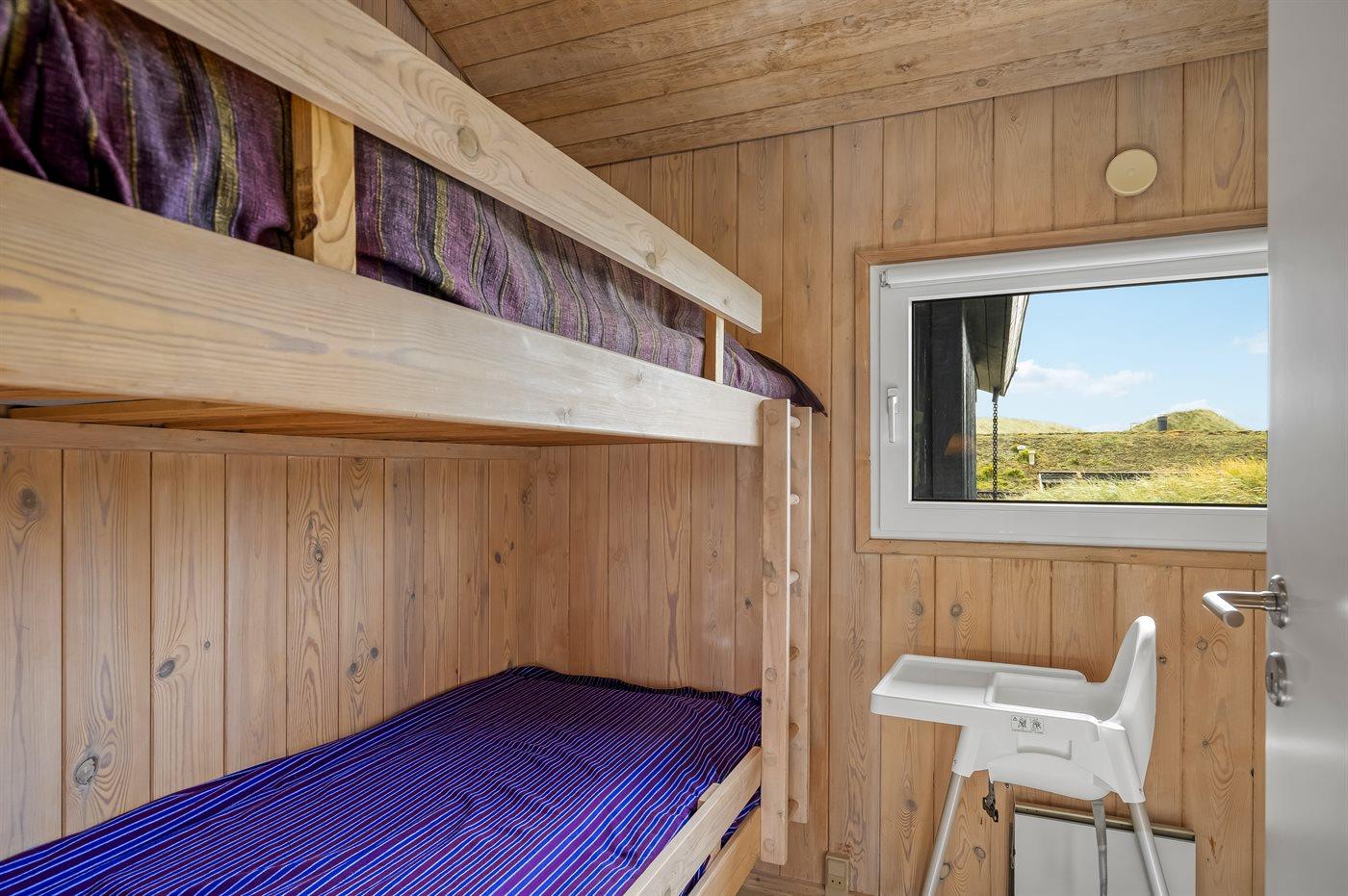 Der er i alt 4 soveværelser. Sovepladserne fordeler sig på: 4 sovepladser i dobbeltsenge. 2 sovepladser i enkeltsenge. 2 sovepladser i køjeseng. Derudover er der 1 stk. barneseng.