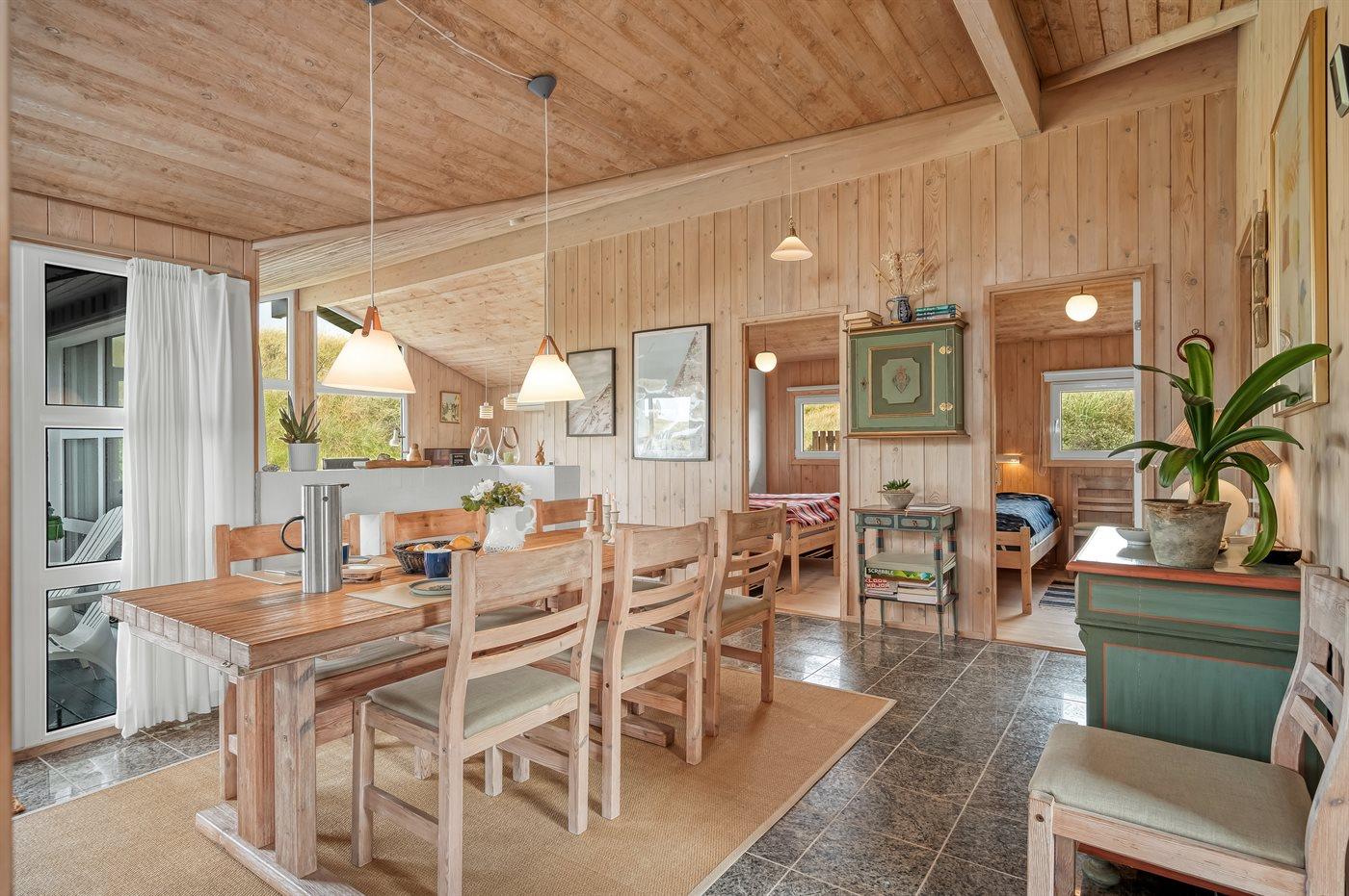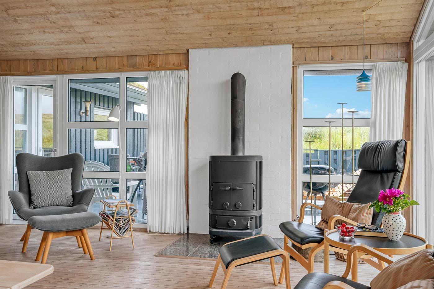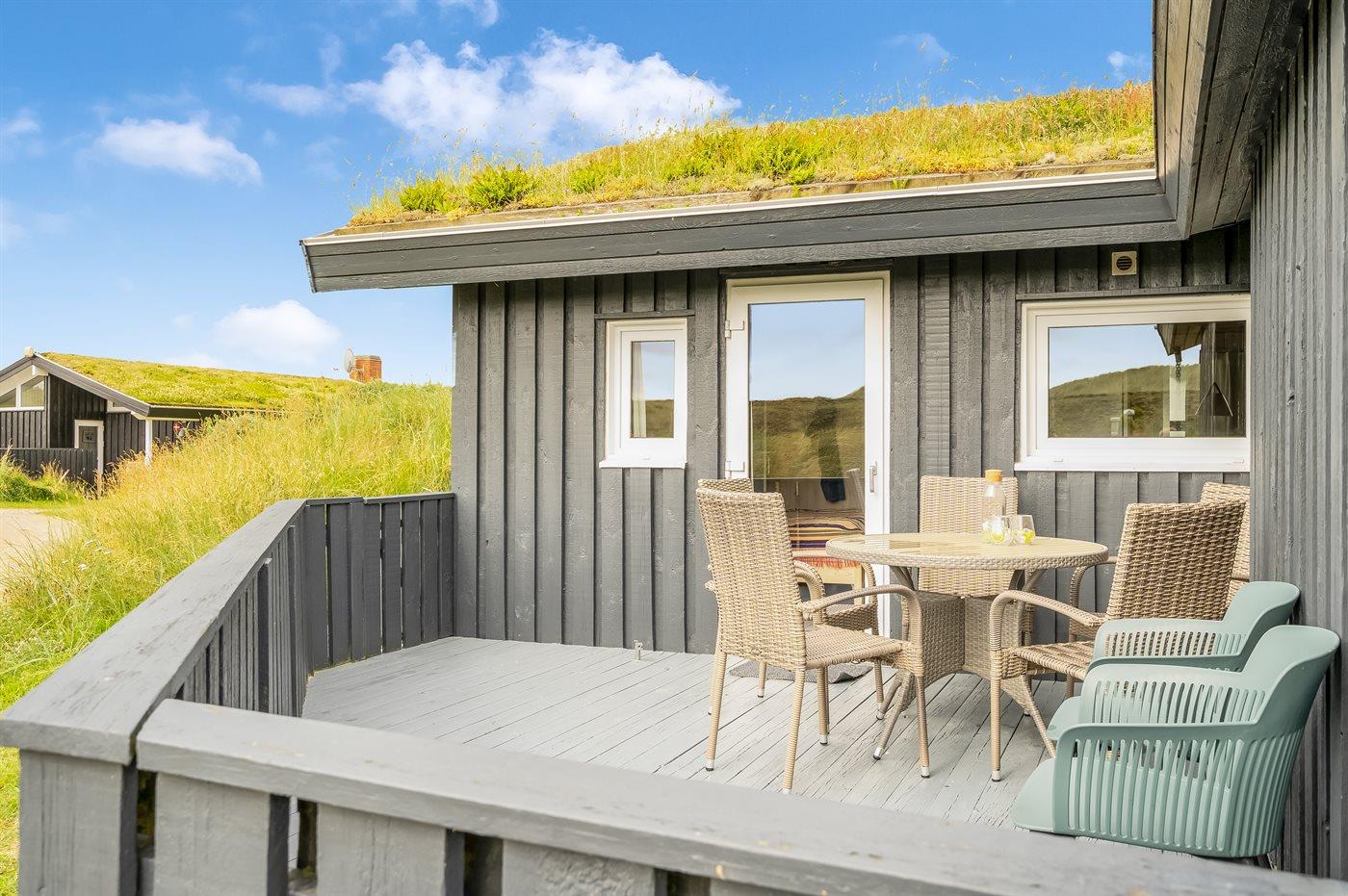 Ferieboligen er beliggende på en 6145 m² stor klitgrund. Der er 260 m til havet. Nærmeste forretning er beliggende i en afstand af 2000 m. Til ferieboligen hører 40 m² terrasseareal. Der er redskabsrum. På lune aftener sørger en udendørs pejs for hyggelig stemning. Parkering ved ferieboligen.