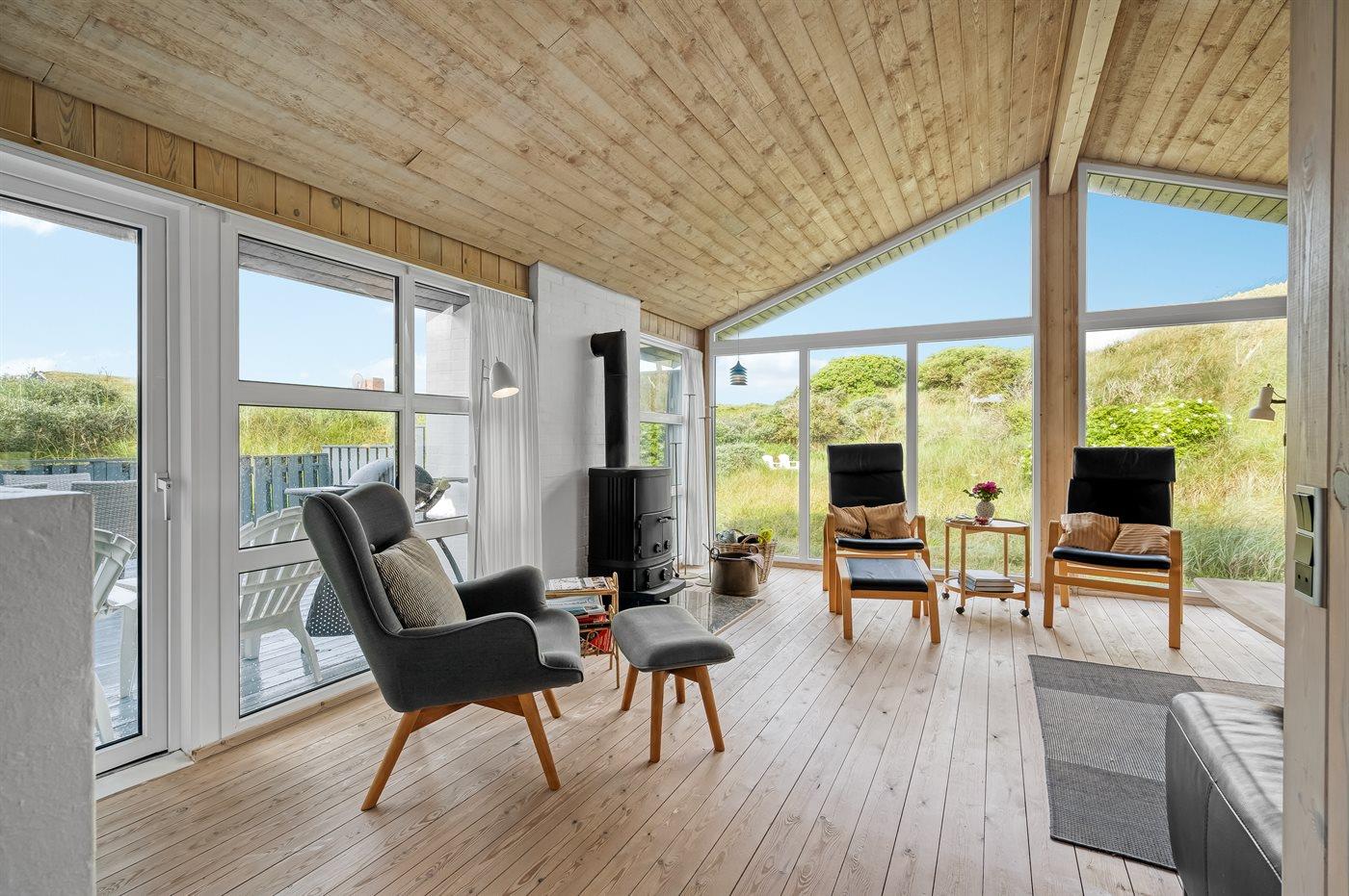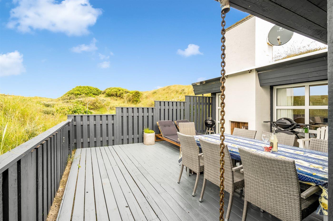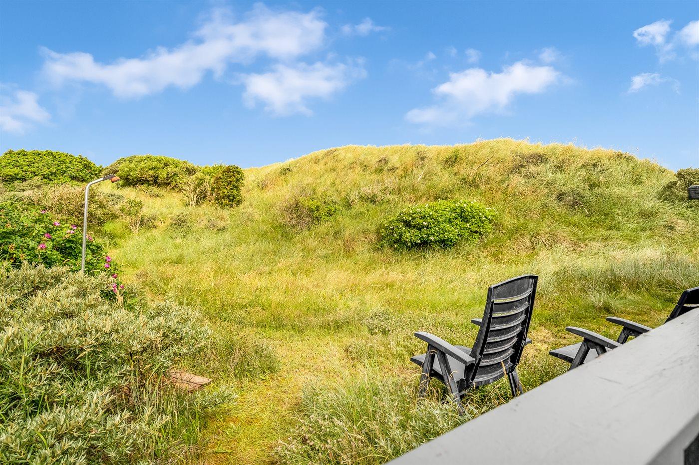 Fantastisk beliggende sommerhus i første klitrække til Vesterhavet og skøn badestrand, på en meget stor og kuperet grund, hvor der fra grunden er udsigt til havet.