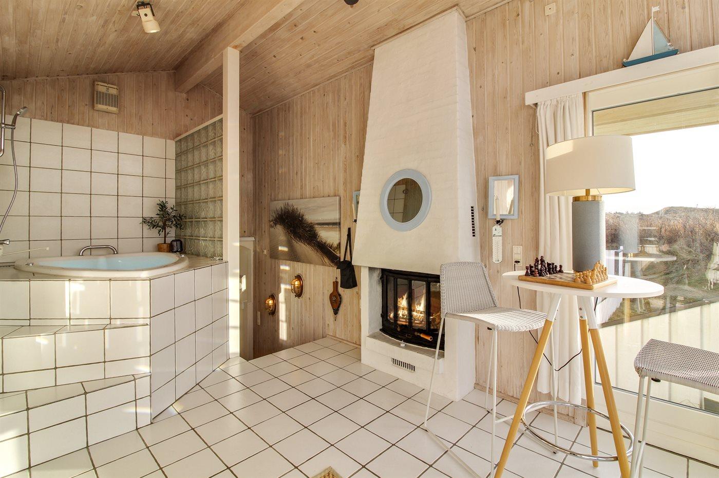 Dette dejlige sommerhus er beliggende lige ved stranden og Vesterhavet med et lille havkig fra grunden. Omkring huset ligger tre solrige og læfyldte terrasser, så det altid er muligt at finde et godt sted at nyde vejret.