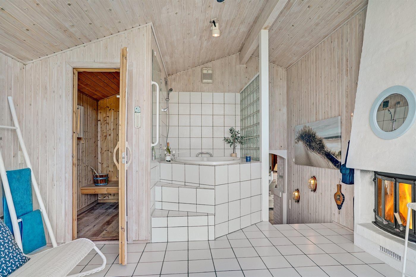 Der er 2 badeværelser med bruseniche og 2 toiletter. Der er gulvvarme på det ene badeværelse samt i spa-området. I saunaen er der mulighed for afslapning.