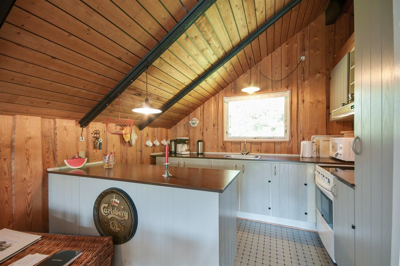 Køkkenet er udstyret med 1 køleskab. Der er 4 keramiske kogeplader, bageovn, mikrobølgeovn.