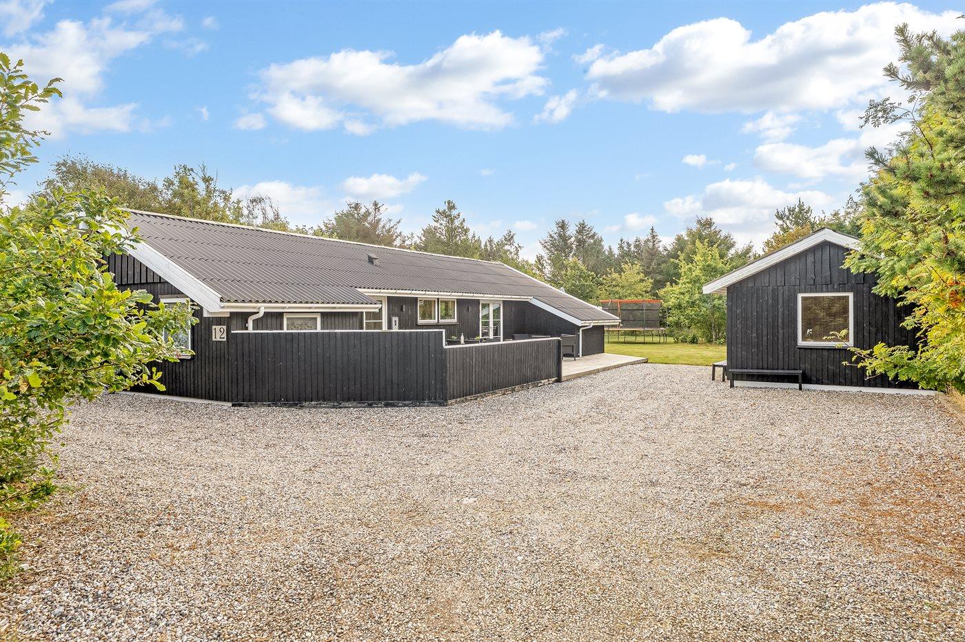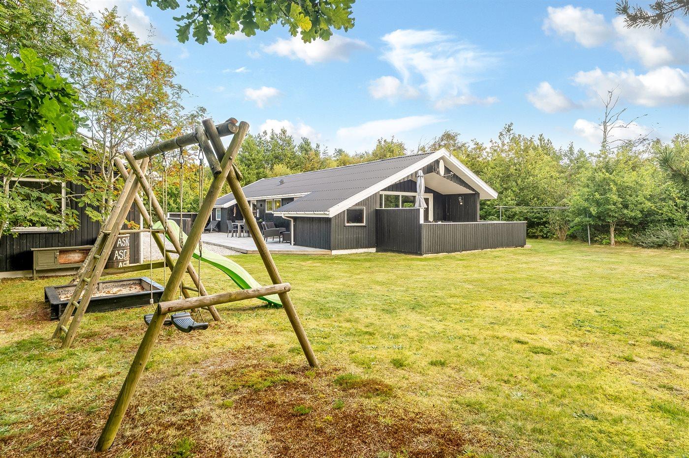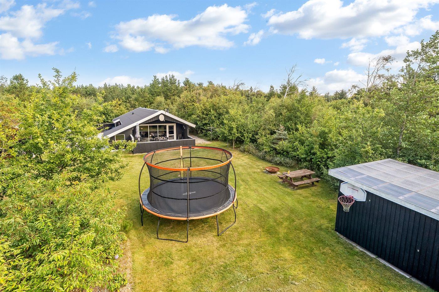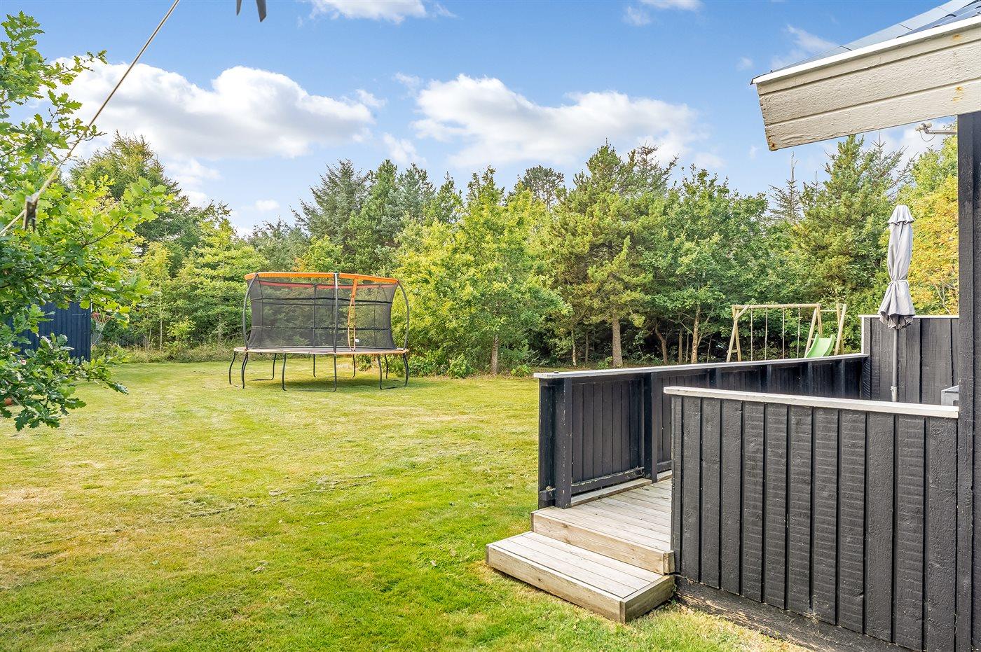Ferieboligen er beliggende på en 1427 m² stor naturgrund. Der er 2300 m til havet. Nærmeste forretning er beliggende i en afstand af 2600 m. Til ferieboligen hører 75 m² terrasseareal. Desuden er der 10 m² overdækket terrasse. Der er redskabsrum. Sandkasse. Trampolin. Rutchebane. Grill til rådighed. Parkering ved ferieboligen.