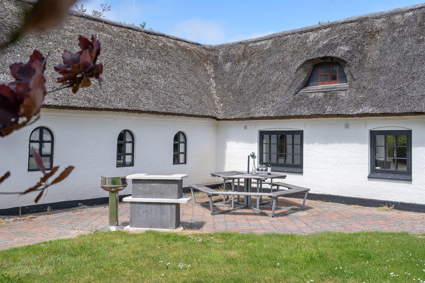 Stort sommerhus beliggende på en delvis lukket grund med god plads til udendørs aktiviteter ved hovedvejen der fører direkte til stranden og Vesterhavet. På åben repos på 1. sal befinder 4 af sovepladserne sig. Desuden hems i hver 2 soveværelser med enkeltsenge, hvor 1 soveplads på madras er placeret.