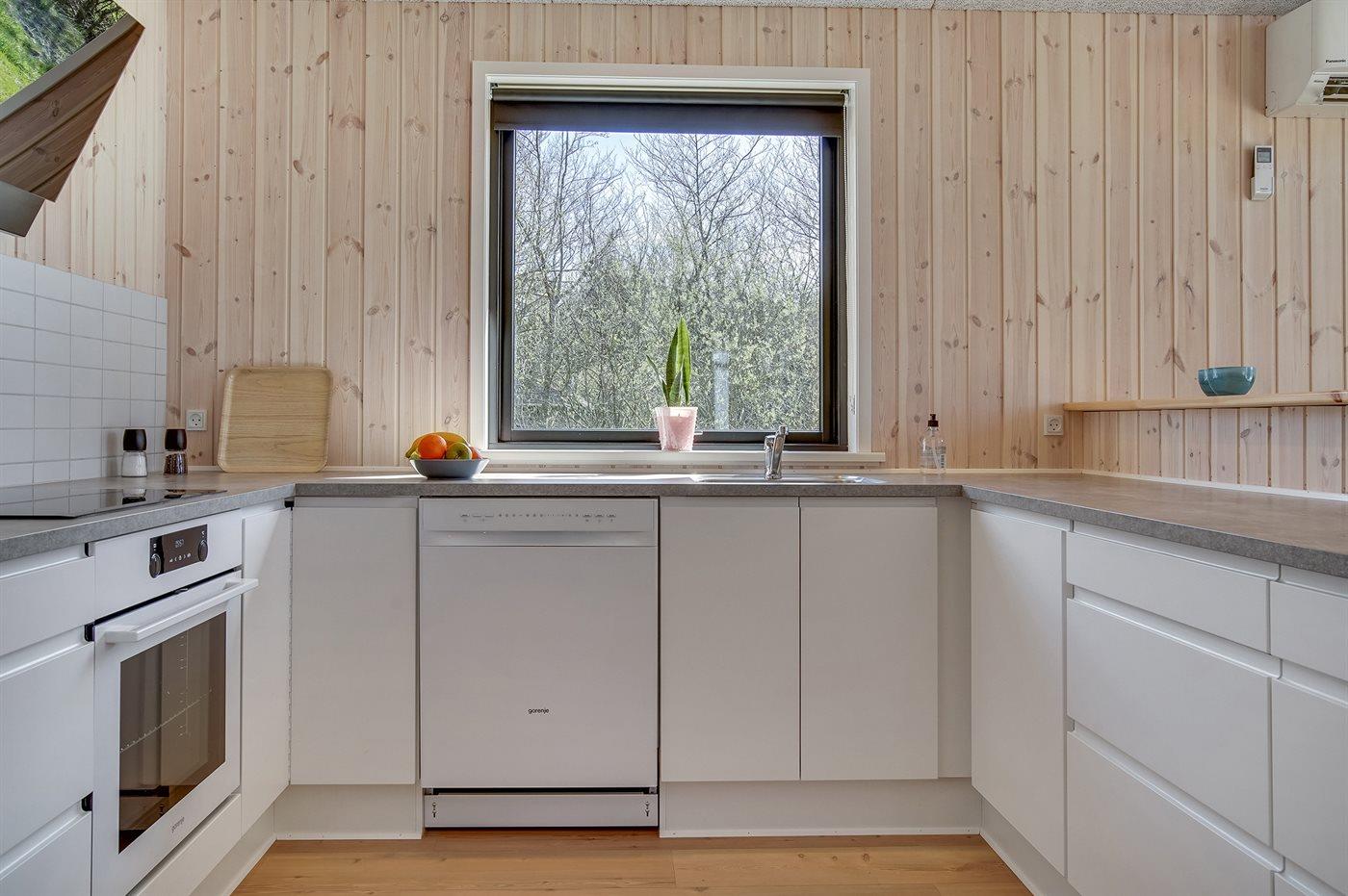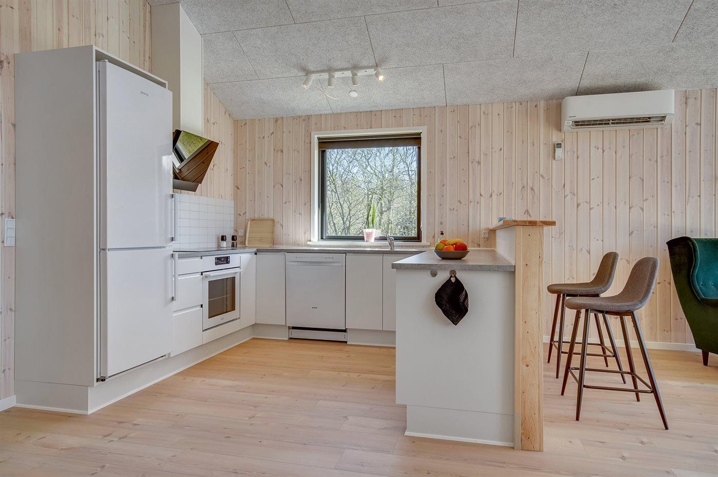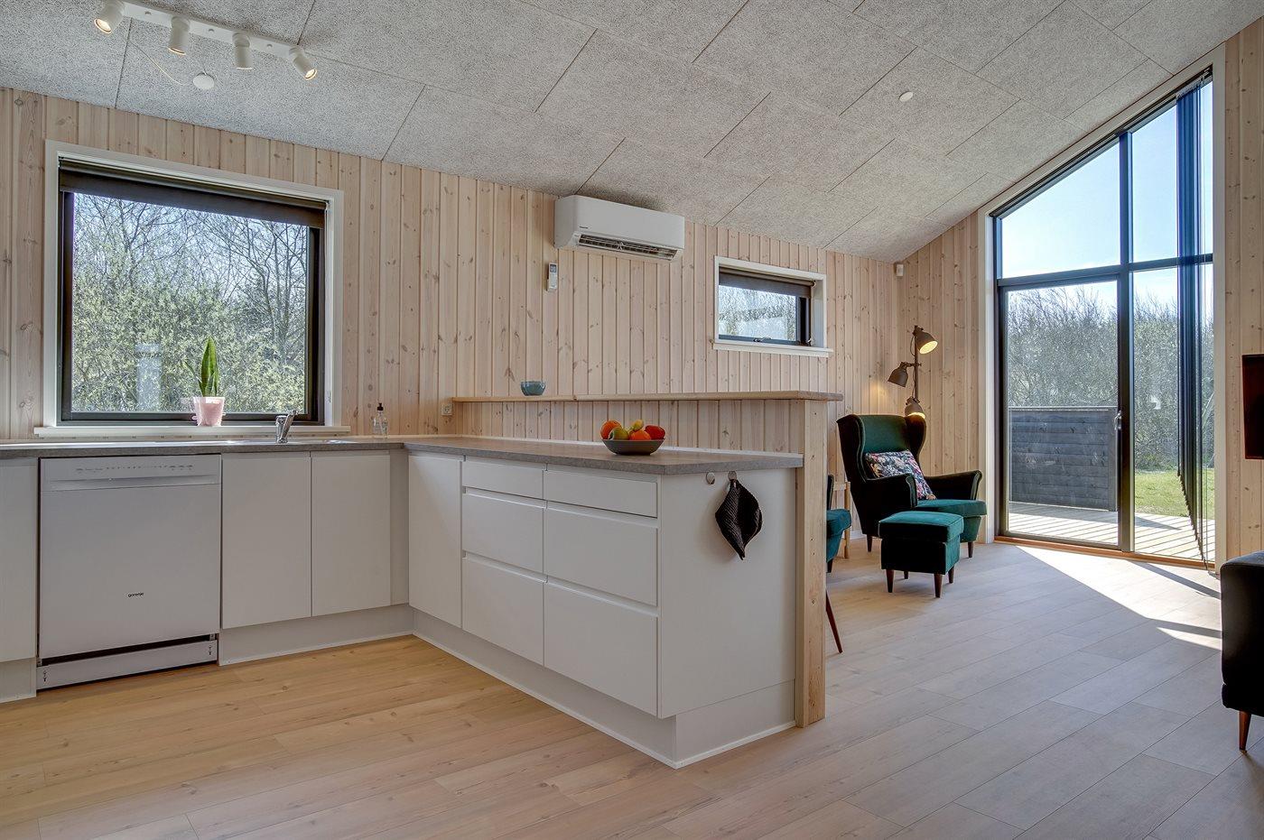 Køkkenet er udstyret med 1 køleskab. Der er 4 induktionskogeplader, varmluftovn, mikrobølgeovn samt opvaskemaskine.