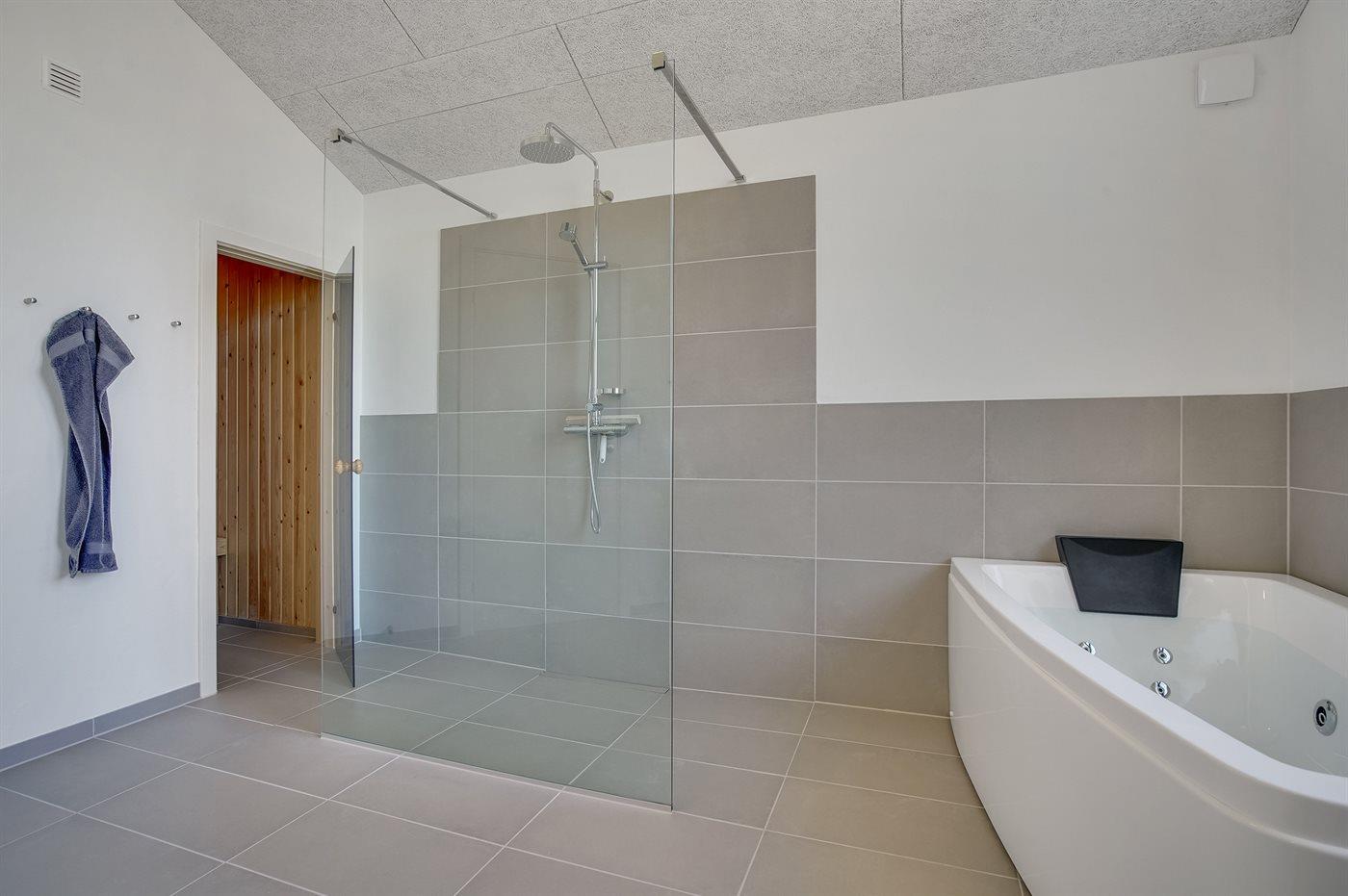 Der er 2 badeværelser med bruseniche og 2 toiletter. Der er gulvvarme på 2 badeværelser. I saunaen er der mulighed for afslapning.