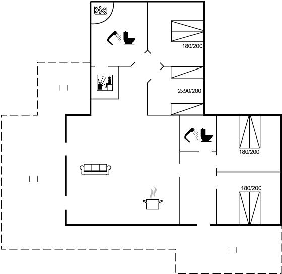 Der er i alt 4 soveværelser. Sovepladserne fordeler sig på: 6 sovepladser i dobbeltsenge. 2 sovepladser i enkeltsenge. Derudover er der 1 stk. barneseng.