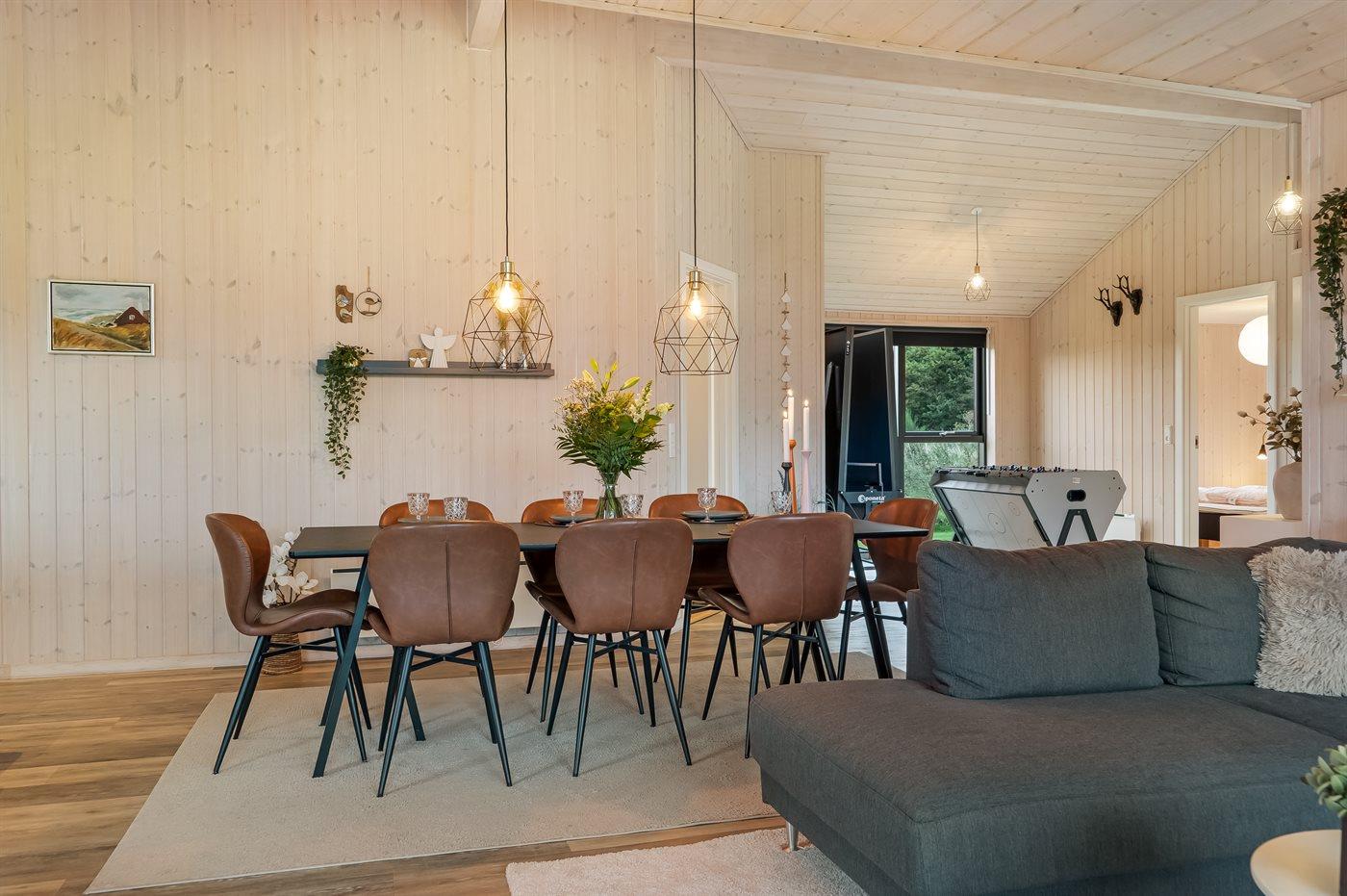 Sommerhuset egner sig til 8 personer samt 1 barn op til 3 år. Ferieboligen er på 120 m² og er bygget i 2017. Det er tilladt at medbringe 1 husdyr. Ferieboligen er udstyret med energibesparende varmepumpe. Ferieboligen har vaskemaskine. Tørretumbler. Frysekapacitet på 90 liter. Der er desuden brændeovn. Til de små er der 1 stk. barnestol.