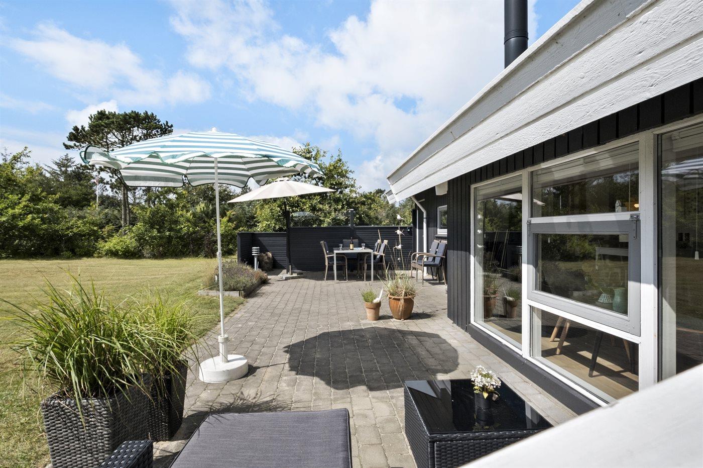 Ferieboligen er beliggende på en 1444 m² stor naturgrund. Der er 2200 m til havet. Nærmeste forretning er beliggende i en afstand af 300 m. Der er en golfbane i en afstand af 6000 m. Til ferieboligen hører 30 m² terrasseareal. Gynge. Trampolin. Shelter. Parkering ved ferieboligen.
