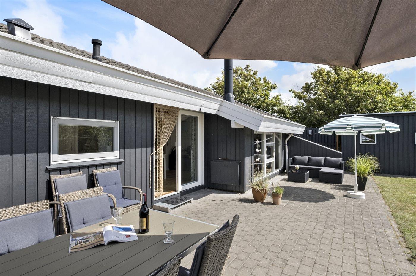 På en lukket vej, ikke langt fra Fårup Sommerland og nær Jambo Feriepark, ligger dette hyggeligt indrettede sommerhus. Den dejlige strand ligger kun en kort køretur fra huset og den store grund er velegnet til boldspil og leg.