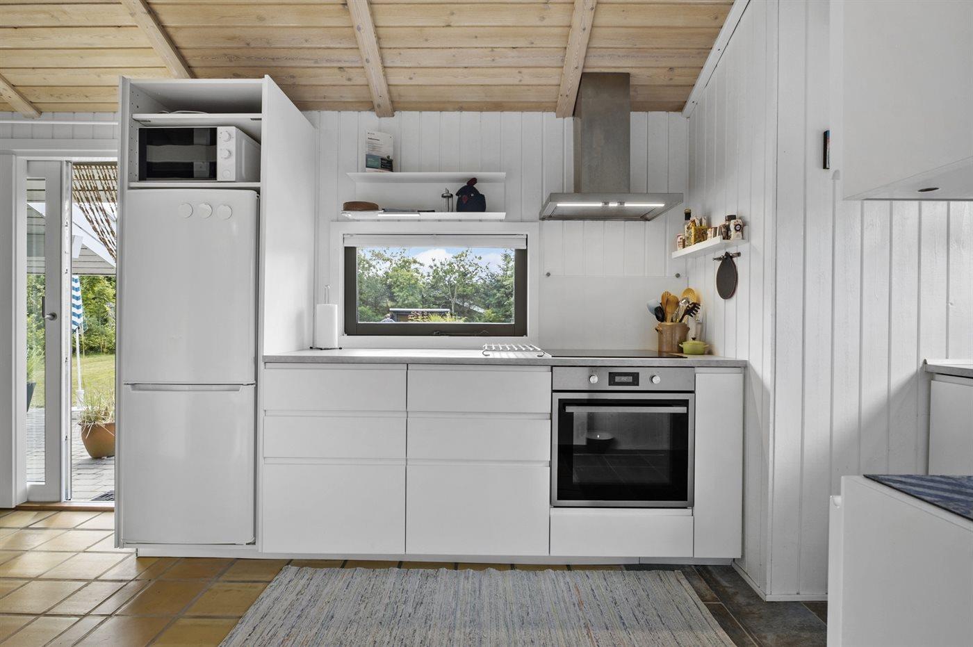 Køkkenet er udstyret med 1 køleskab. Der er 4 keramiske kogeplader, varmluftovn, mikrobølgeovn samt opvaskemaskine.