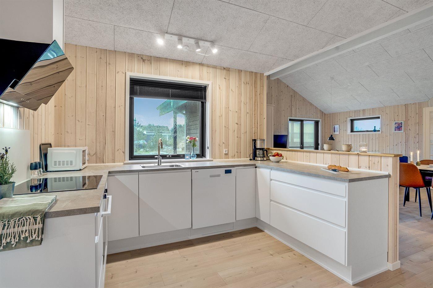 Køkkenet er udstyret med 1 køleskab. Der er 4 induktionskogeplader, varmluftovn, mikrobølgeovn samt opvaskemaskine.