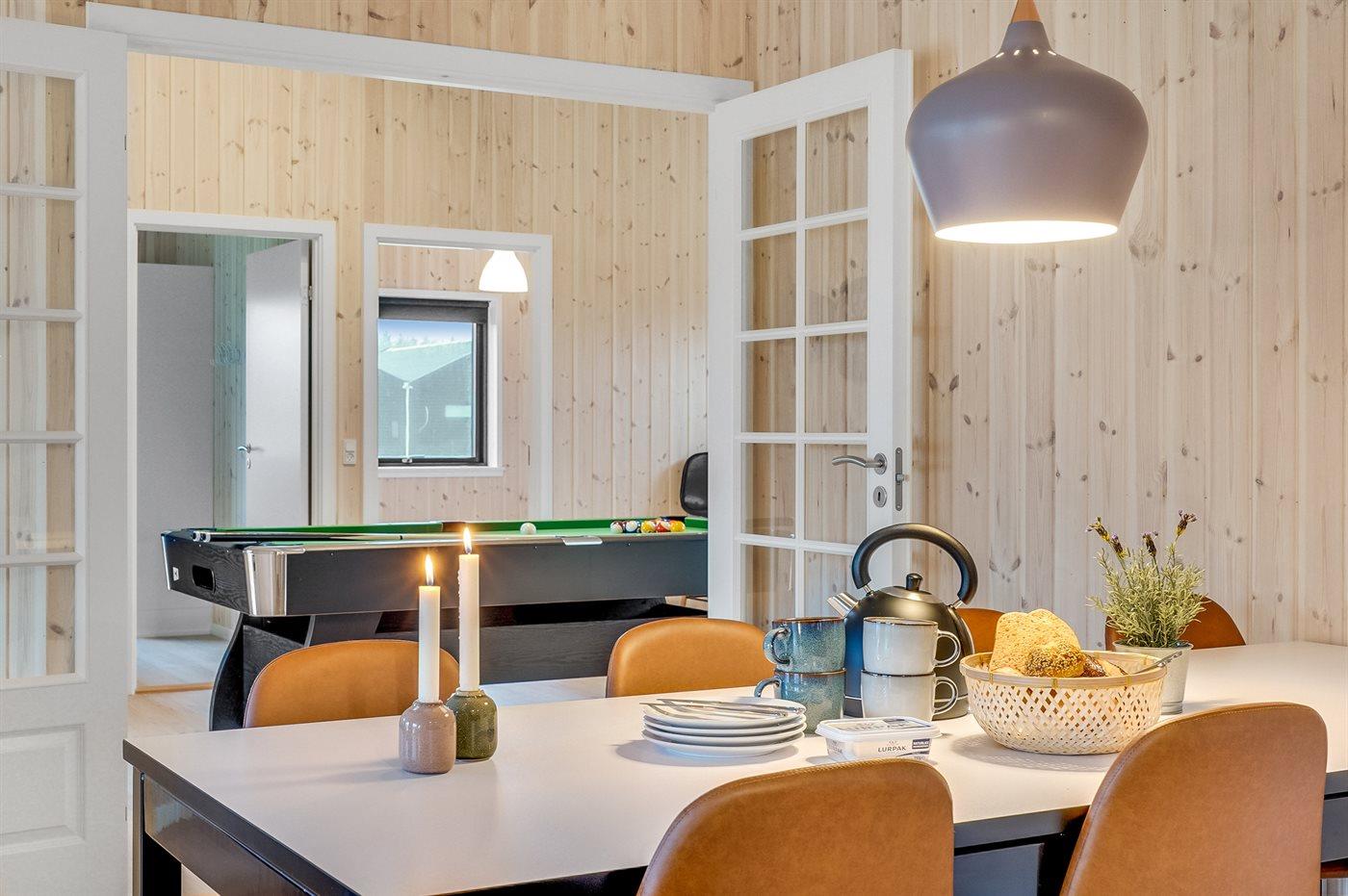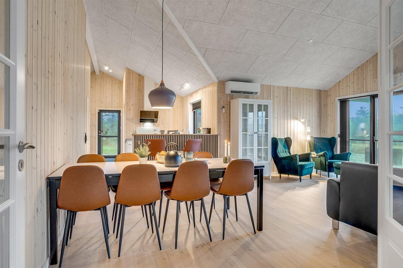 Sommerhuset egner sig til 8 personer samt 1 barn op til 3 år. Ferieboligen er på 140 m² og er bygget i 2021. Det er tilladt at medbringe 1 husdyr. Ferieboligen er udstyret med energibesparende varmepumpe. Ferieboligen har vaskemaskine. Tørretumbler. Frysekapacitet på 50 liter. Til de små er der 1 stk. barnestol.