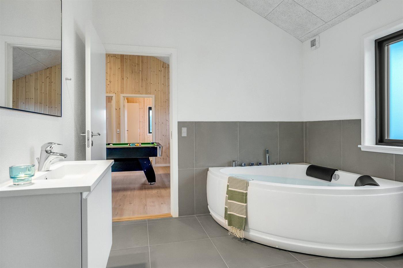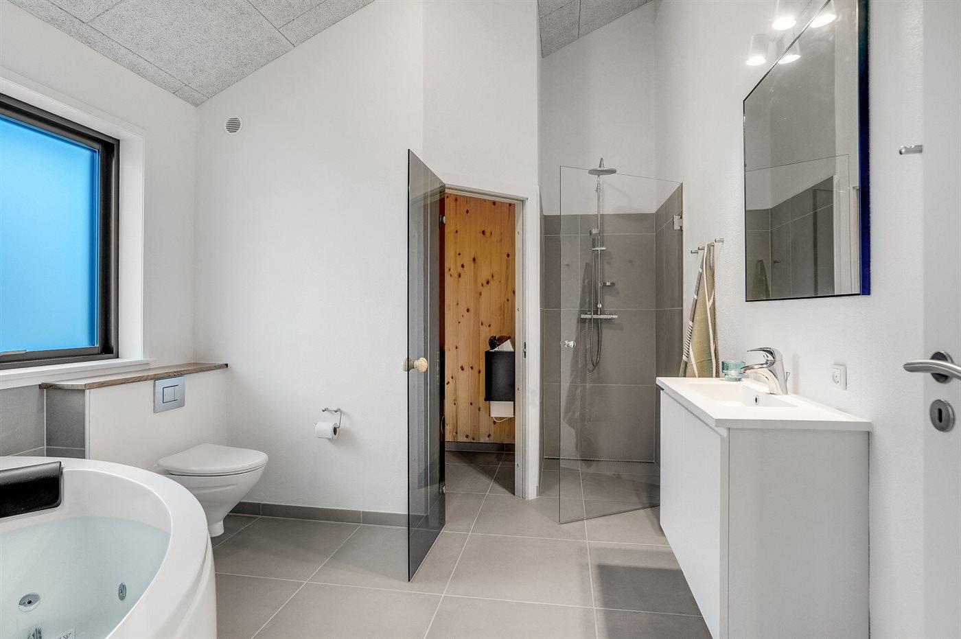 Der er 2 badeværelser med bruseniche og 2 toiletter. Der er gulvvarme på 2 badeværelser. I saunaen er der mulighed for afslapning.